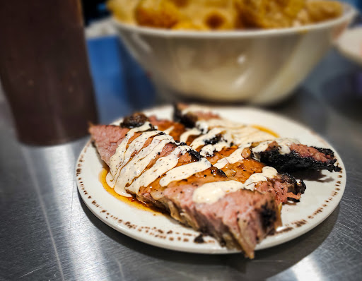 -The brisket- juicy, fluffy, slight burnt end fatty. Soo good. The sauce combination on the presentation was mouthful watering. -Pimento Cheese/ pepper jelly pork rinds, you could hear the popping from the freshness. Warm and crunchy. The jelly cheese combo though counterintuitive, hit the taste buds so well! -Pulled pork- juicy meat with fresh pickles. Tasted great while hot, but honestly had it the next morning from hotel fridge and it made my day. -QR code for free mini banana bread pudding. Huge chunks, just the right sweetness. I'm a traveling foodie and love trying new places. The easy stuff first. Clean and welcoming atmosphere, check. I did bar seating and Stacey the bartender instantly made me feel at home. Courteous, asked me for a drink order and some quick recco's on food options. Made me feel at ease with light topics that felt so organic, while being professional and attentive. 5 stars. Jimmy one of the owners was there and spent a few minutes chatting about some overheard commonalities we had. Great demeanor and full of passion about this BBQ craft and mission.