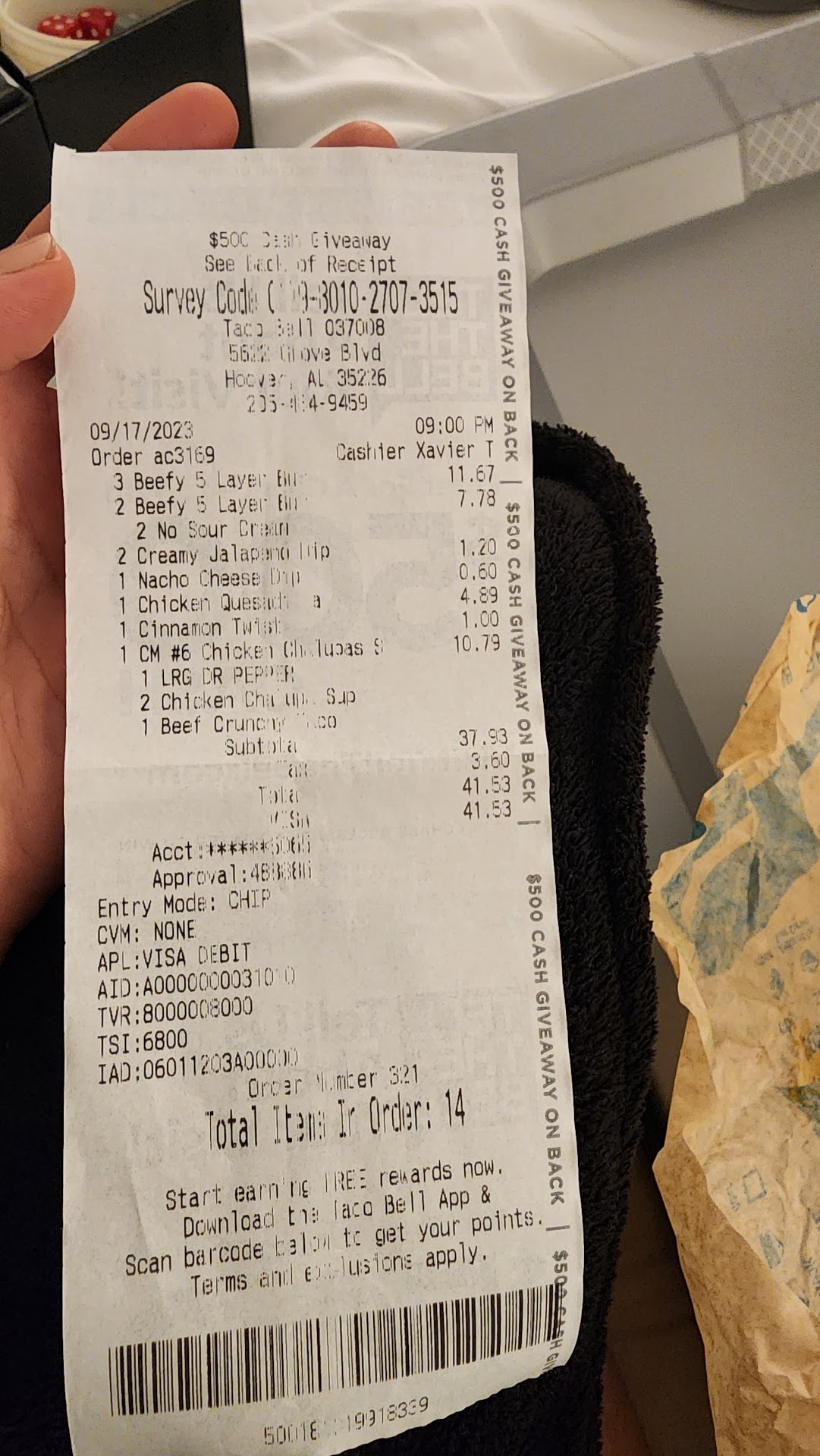 Ā Ā Ā Read moreVisited today and we specifically stated that we want our food (Cantina tacos and chalupas ) as close to the advertisement photo as possible. Once we receive the food and was on the interstate we noticed that our food was totally different from what it should have been so we called and asked for the manager. She got on the phone and I explained to her that the Cantina tacos should be fresh and in a little box with tomatoās, sour cream, shredded cheese, lettuce and nacho like cheese. She began SCREAMING on the phone yelling āI fix your food and I put the cheese on the bottomā. I stated that I am looking at the tacos and thereās only meat, lettuce and shredded cheese, basically a regular taco!. Look at the picture below. We received 4 of these. She said that they were out of tomatoes but I didnāt get the memo. She was cursing up a storm! Then she hung up. I called back and a guy picked up and I ask for the corporate manager. He ask me to hold on and 5 seconds later, the phone hung up. UNPROFESSIONALISM at it best! Owner if you are reading this please pull up the phone conversation today October...