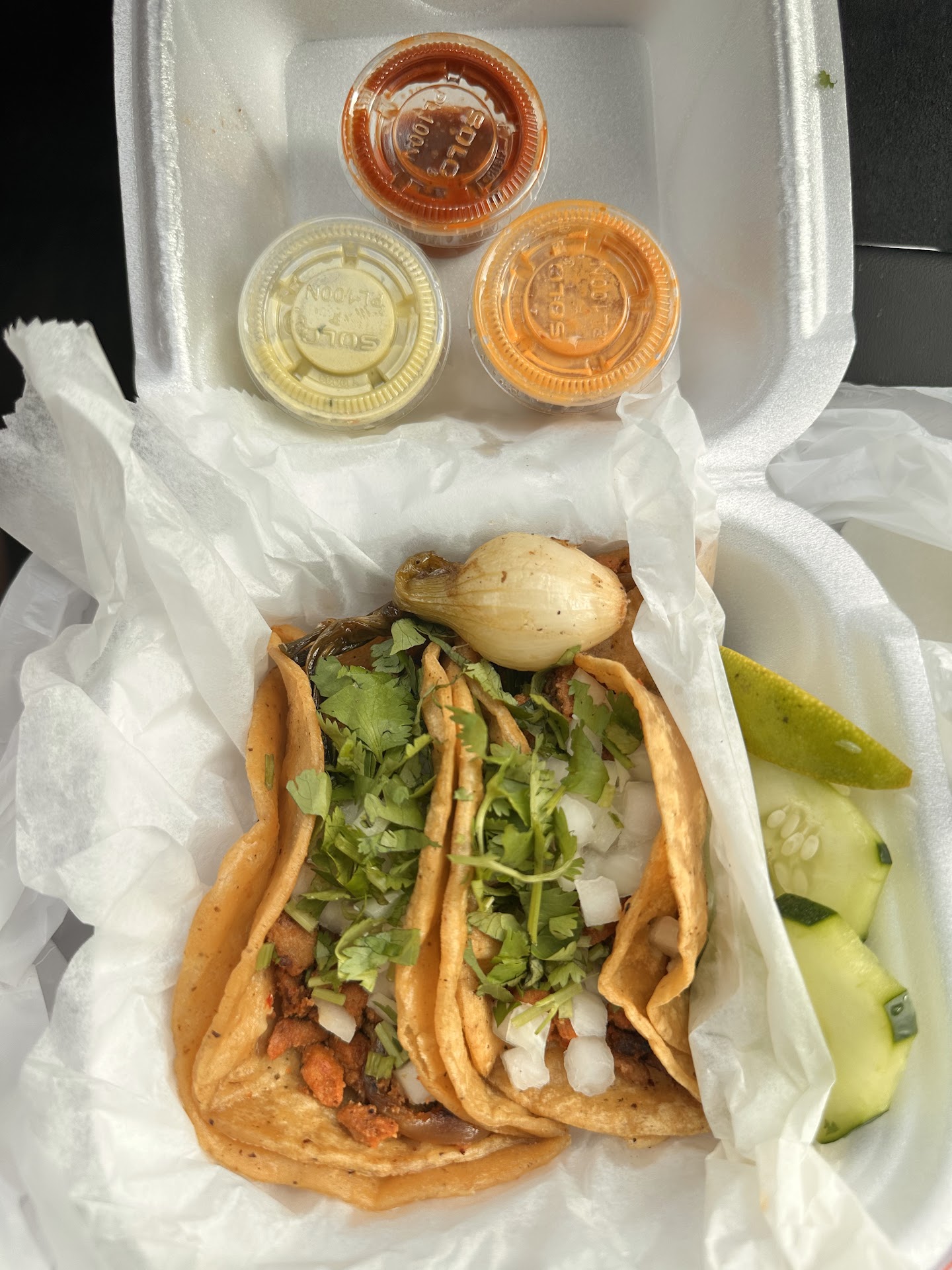 Ā Ā Ā Read moreI am from out of town and was looking for some good tacos. I ordered from Uber and I will say the menu was a little misleading. The menu for ātacosā should be changed to ātacoā. I didnāt realize one taco was $3.50 but because the menu was not very specific I ordered two just in case I was only buying one. Iām from a place where we get tacos for about $1.50- $2.00 max so I was hoping the ātacosā meant at least two. Anyways, overall , these tacos were great. I think the tortilla needed a little more flavor. Especially if we get two tortillas per taco. A pinch of salt would go a long way but other than that they were great. Also I am not a fan of the cucumbers.. maybe update the menu on Uber so that we can exclude unwanted items to reduce food waste.