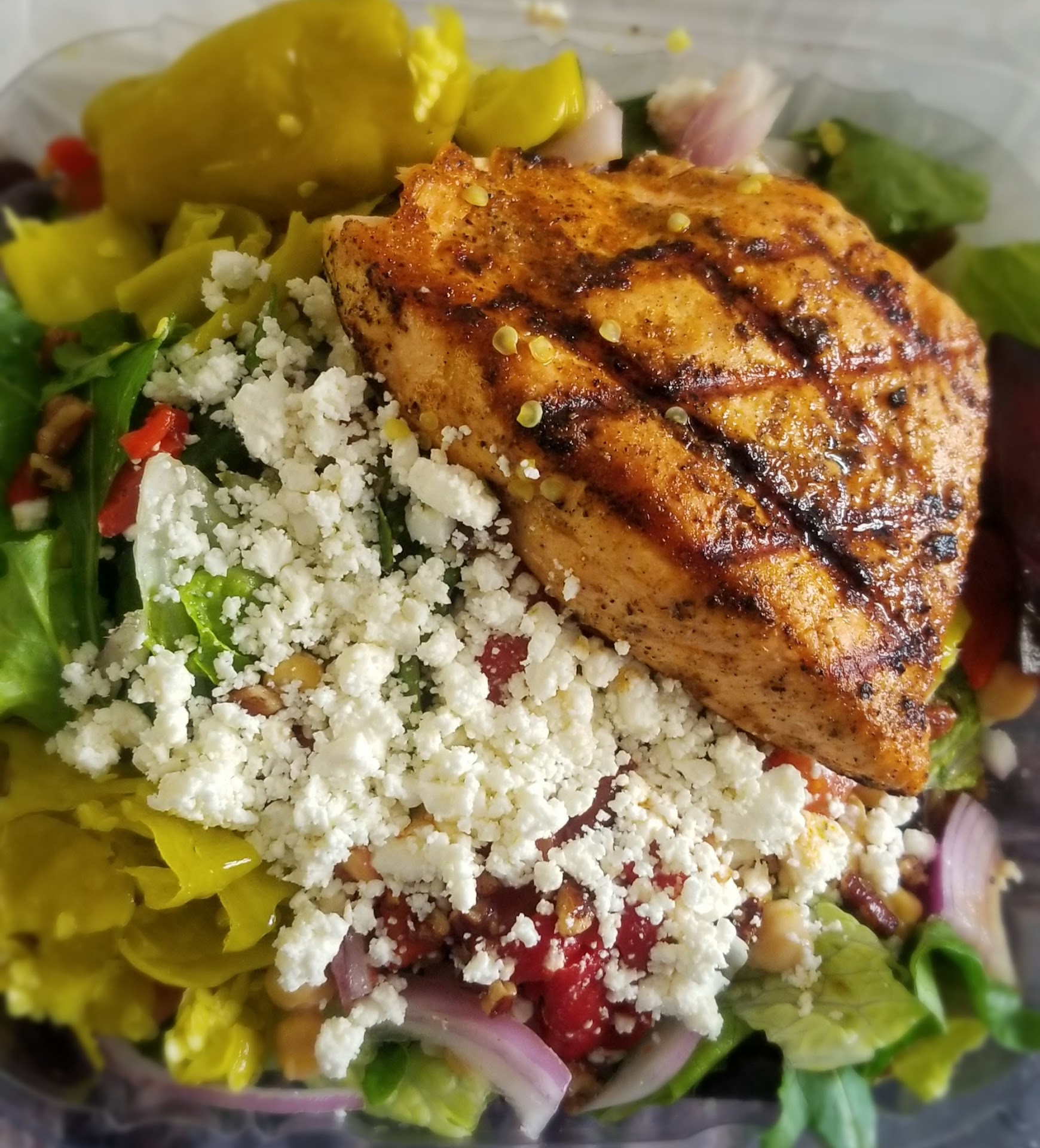 I know, I know, it is called Taziki's and not Tzatziki but I was dreaming of bowls filled with tzatziki when I first visited the place and was deeply disappointed to not find any tzatziki. Spanakopita is a phyllo pie filled with spinach and feta cheese. I have eaten spanakopita in 4 different countries and countless locations and I had it without cheese, with ricotta, with onions, with tomatoes, good and bad, but mostly sumptuous. Why would anybody roll chicken and spinach into a tortilla and call it spanakopita? Same with Greek salad. Traveling in Greece as a vegetarian will make you a connoisseur of horiatiki. Ripe tomatoes, cucumbers, salt, olive oil, often onion rings and olives, sometimes feta (sometimes as an extra), rarely oregano, or pepper. Where is the lettuce coming from? A portobello mushroom sandwich is usually the vegetarian variant of a hamburger and therefore vegetarian staple. Why is there chicken inside? Lastly Taziki's dip reminds me of Cacik, which in itself is good, but dill and thin cow milk instead of strained sheep milk is just not the same as the Tzatziki...