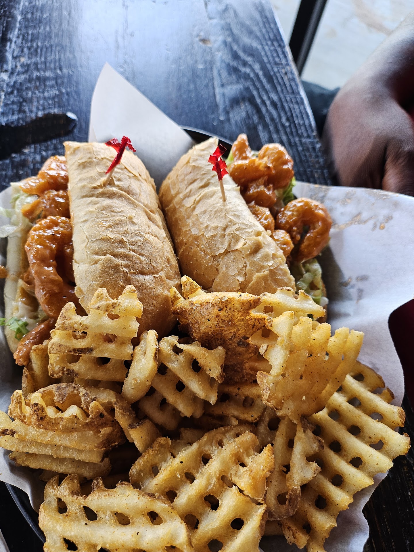 ย ย ย Read moreWe were SO anticipating great Cajun food after reading the reviews. That's not what we got. I took my dad to lunch. We're easy; we don't require changes to orders. He ordered the Voodoo shrimp and grits, I ordered the boudain balls. Simple. Cook it as described and it should be good. His shrimp were way overcooked and his grits were as dry as sawdust. I was afraid to sneeze, lest his lunch be launched throughout the dining room. His stomach was upset soon afterwards. My boudain balls... I'm not sure how to describe them. Maybe this way: pre-dried papier mache with a fried coating. The inside was wet, mushy and tasteless. The outside had a crunchy, tasteless, watered-down, very thin "batter", (Elmer's glue, maybe?). I haven't suffered any side effects 7 hours later, but I'm wondering if my DNA might change after ingesting it. Our server was good- no "wow" factor, but she did her job and I tipped above board, having been a server years ago. I wouldn't recommend this restaurant/chain to anyone. If you like Cajun food, study the recipes and try making it at home. It's easy, cheap and MUCH more satisfying....