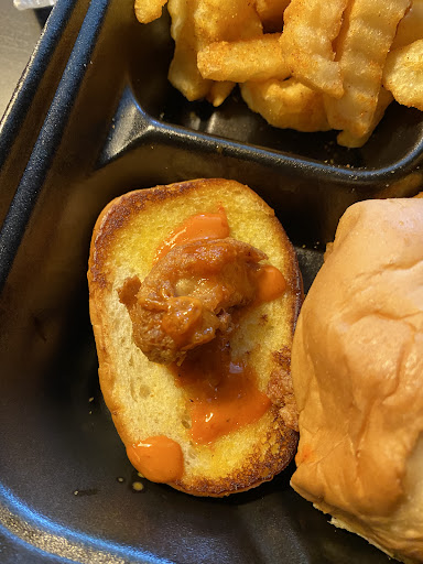 Read moreOrdered a nibbler meal and got this. 2 of them were this amount of chicken and the third had about twice this amount. Spoke to a manager after I had already gotten home and settled, offered to make a second meal for me but I wasnât about to get out again. Granted, she was very nice, and Iâm sure she would have given me the meal, however this should never have happened in the first place. As someone whoâs worked in kitchens, I would NEVER serve something this under portioned to a customer. Like just tell me you donât have the chicken and it will be a minute. I understand drive thru times are important, but this is unacceptable. The bits were extremely tough as well. Basically I had bread with sauce. Iâll still be back, hopefully not with this...
