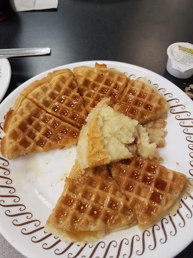 Unfortunately, my first time at this new location was a true disappointment. I walked in to see that the sanitation score wasn't visibly posted (I didn't see it anywhere and I always look at those when I eat at any Waffle House). The table I chose appeared clean from a distance, but it was not and the menus had food stuck on so I placed them off the table and didn't even use them. I was there with my 2 children (age 3 and 7). I only went for waffles, I ordered a double waffle (saves $1 vs. Getting 2) and a extra waffle for myself. It had been such a long time since I've ate at waffle house so I felt like tonight would be a treat, but I was tricked! I couldn't flag my waitress down after she only brought part of our order. I was in need of an extra plate, refill on my drink and once my waffle was delivered (by someone else) and I finally got to eat, when my kids were halfway done with their waffles, I take a huge bite and realized MY WAFFLE ISN'T FULLY COOKED!!! I literally ate batter. Once another waitress saw the distressed look in my face she asked me if I needed anything. I mentioned I needed a new waffle as this one isn't completely done and showing her what it looked like. I think her assumption was that it simply wasn't cooked to my standards, but it was far worse than that, I'm just not the type of woman who puts up a big fuss as I like to give people the opportunity to make it (above) right. The waffle I received as a replacement was fine, it wasn't hard or uncooked, it was soft, but I still had the taste of the uncooked waffle in my mouth that the texture of the new waffle just made me feel sick of eating anymore. Ofcourse, since my kids finished eating way before me as we didn't get our meals at the same time, they are now looking to eat from my plate (even though we all had the same portion). That's kids for you, lol. I obliged since I wasn't in the mood to complete the meal. I gave exact change, no tip as I wasn't sure who the tip would go to as 3 people came to help with each issue, but no one really cared as I had to flag people down for help. Someone else did ask me how I was doing. Not sure if that was a manager or what but she didn't speak to me until I had already gotten up to pay, so I didn't feel like expressing my concern and getting a "Sorry, to hear that...glad we got ya sorted out. Take care!" I didn't feel like that team of people would be capable of showing compassion and discounting my bill. It would've just made me feel worse if I even expressed myself beyond stating my issue as I already did. Now my tummy hurts and idk if its in my head of if its truly because I ate waffle dough. Needless to say, I won't be back to that location on Legion Rd. I will not let this incident speak for all waffle houses as I am smarter than that but this waffle house has poorly trained staff. It may get customers due to its location, but it will not keep the same customers. I'm from here and everybody knows which waffle house locations are best (Hope Mills Rd.) and which are worse (Raeford rd. On the corner of...