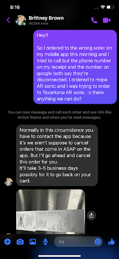 I got screwed over. I have went to all lengths to get this straightened out but apparently sonic won't correct there mistakes. That's ok if they have a need to take from customers and not give them what they pay for. I don't know to do about this any more. Count my losses? And call it a rip off I quess. I was treated with disrespect by an employee and the manager didn't honor his word with me. Take your chances people. You don't always get what you paid for from them and they act like your order is important enough to correct it. I spent 32 bucks with the on line order and cash when we picked up order. Ended up getting some one else order after waiting on two diffrent occasions after ordering online. What really sucks is i still have money on my Sonic card since you can only order online by money on card. So after 3 weeks i guess they think i forgot about getting there screwed up order. All the gas, time and money I have invested in this and they just shut me down and I have not been made whole by far yet. Take what they give you or you might be like me and get nothing for that...