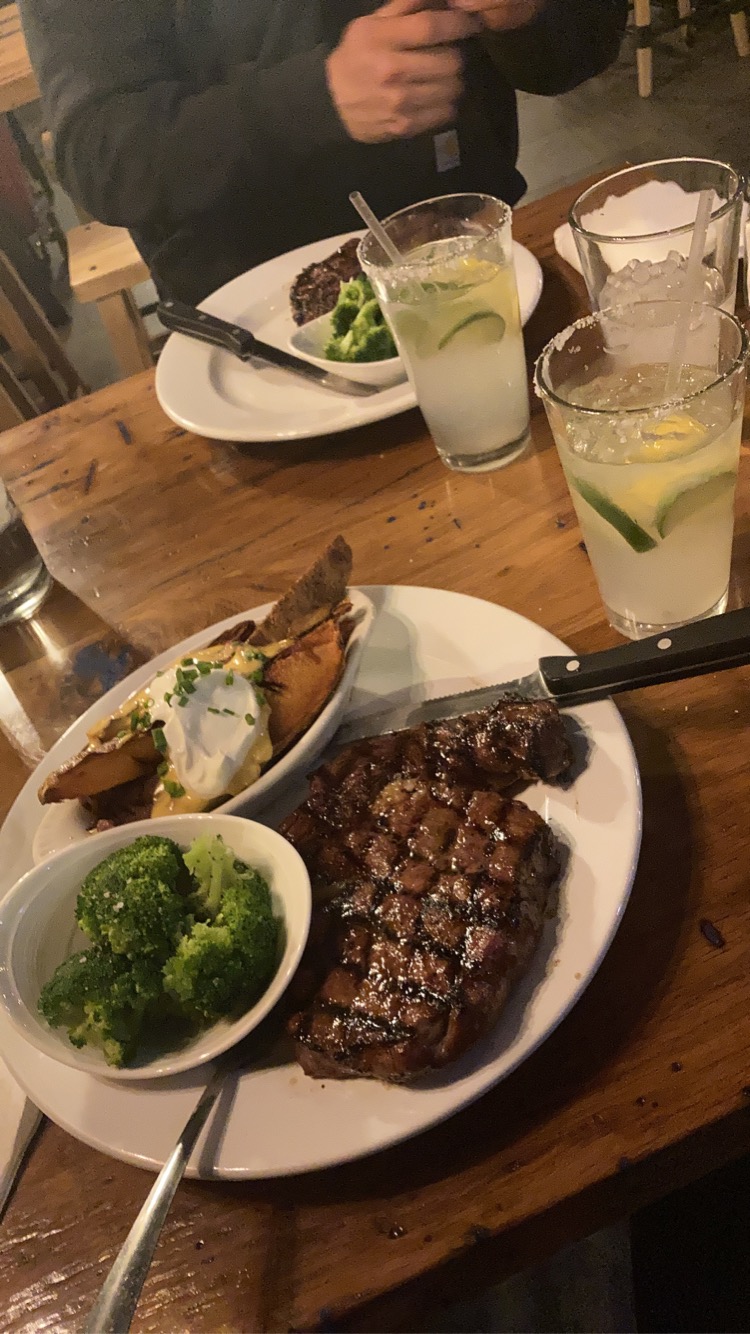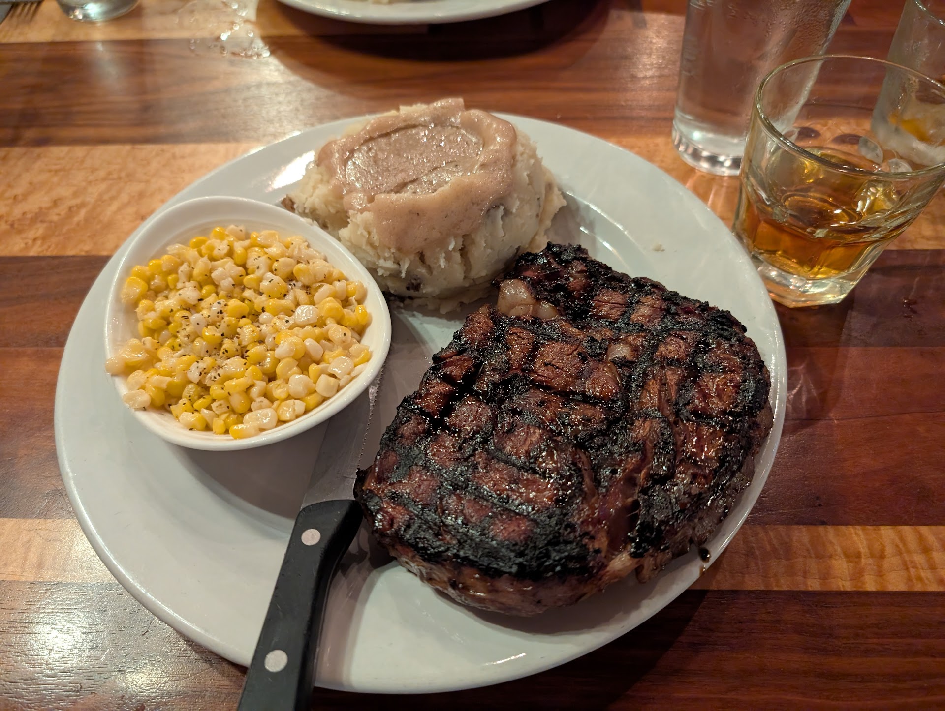Read moreMy son said it is melt in your mouth steak every time he has been here. Three of the four of us chose the ribeye at $52 a plate, which doesn't include salad at a "farm to table" lol. If you do get the salad, it is served on a saucer so tiny you cannot toss it without losing half of it. When my daughter finally got hers, it had no cucumber as if she requested it that way, however loves them. The dinner came with fresh off the cob corn and baked potato that was undercooked and dry for supposably having butter and sour cream in it. All three steaks had an excellent flavor, however, were extremely chewy. We all just brought them home and it may have been a fluke, but for that kind of money and only open three days a week, it should be melt in your mouth perfection every time. As you can see from my picture,its practically untouched. That being said the Busch Light onion rings were 💯🔥just delicious! I should have went with the tenderloin 😂😂.... Story of my life. The staff was great, the atmosphere awesome, and the very young man serving our food was...