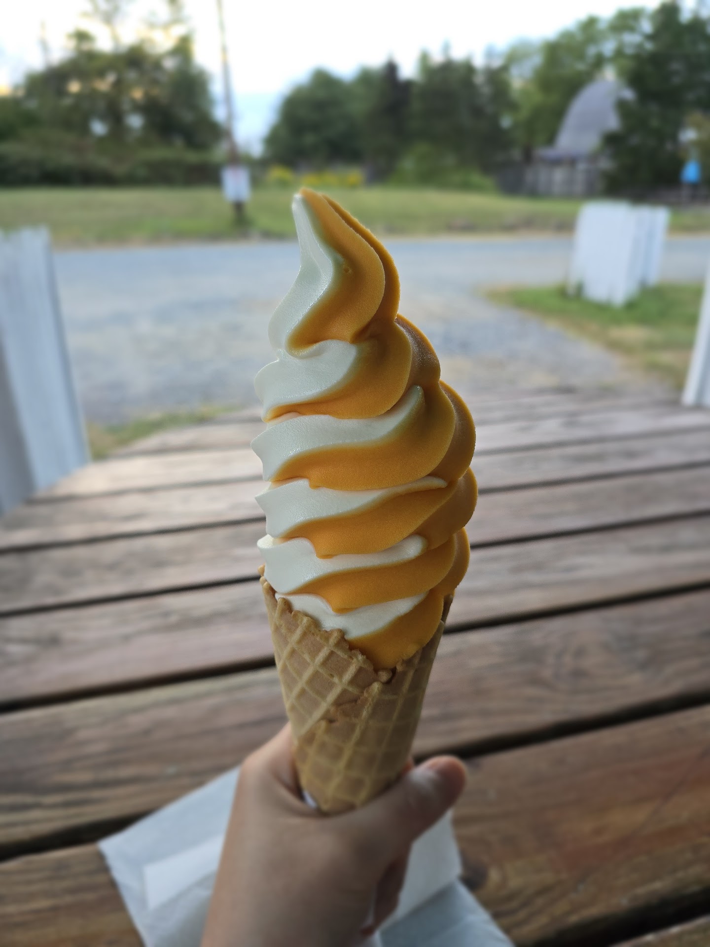 The orange and cream soft serve was good but not the best I've had. The orange was more like a sorbet and tangy which I thought would have balanced nicely with the vanilla but it was too watery in comparison. It was icy while the vanilla was soft and creamy. The tang from the orange was pretty overpowering.