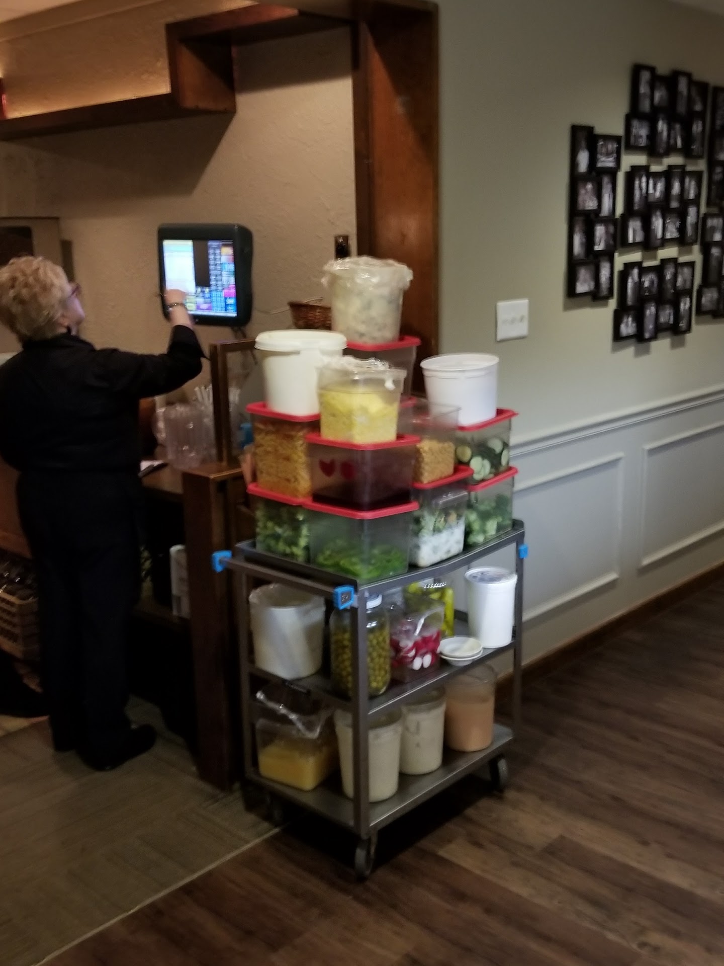 Ā Ā Ā Read moreI would give 0 if it was a possibility. I've worked in food service for 16+ years and know about food holding temps, something they do not! My party entered the restaurant about 345pm, Sunday and was seated by the salad bar. When I got up to leave over 2 hours later and went to speak to the manager, the salad bar's restock cart had never moved from it's apparent home in the dining room with all the items on the buffet from already sliced vegtables to mixed pasta salad. I would not allow my parent to order the salad bar as those itens need to be kept cool at all times to prevent the food from entering an unsafe temperature causing food poisoning and possibly botulism.Ā The manager didn't apologize or say she would take care and dispose of the food immediately, and didn't move to do anything until after she saw me standing and taking pictures of the cart in it's nice warm dining room home.