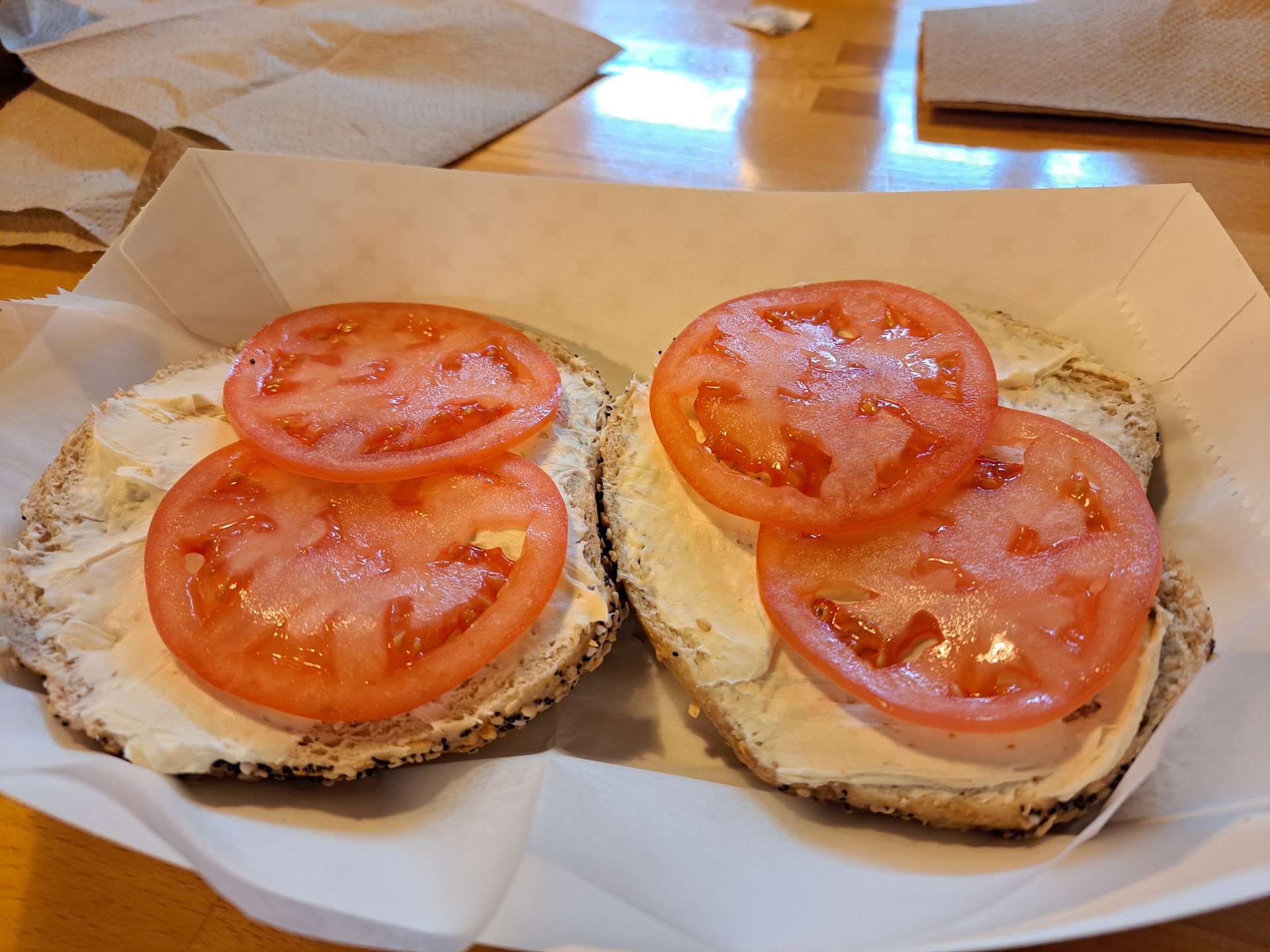 Deli on a Bagel a few minutes down the road had me in and out with my dozen bagels in 2...