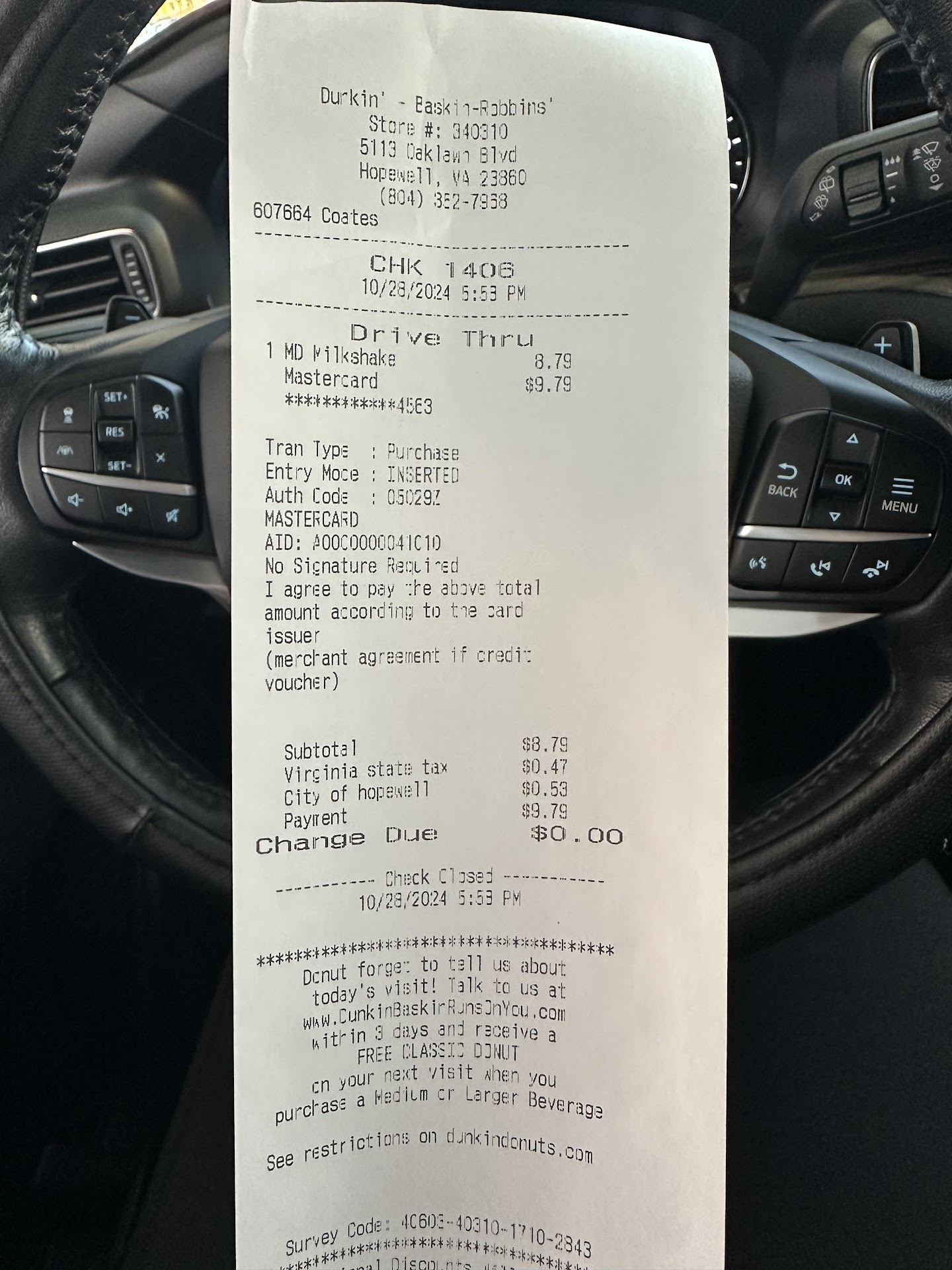 Read moreCustomer service was not the best. The lady had her headset on but also had her air pod in talking on the phone so she couldnât hear anything I was saying. She put the ice cream right on top of the cone and it fell off before we could even leave the building. (She gave us a bowl for my son after that). Left and my second sons ice-cream fell right off all over the car. The cones were also very stale and our ice cream was slimey. It went right in the trash and we had to go to Dairy Queen next door because we were taking my son for ice cream for his birthday....