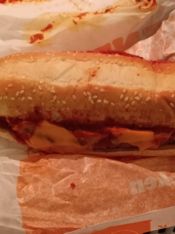 For some time I have been on a quest to get a Burger King Chicken Parmesan Sandwich. One BK after I ordered, told me they only had one at the window and I was forced to either pay full price or take another sandwich. Another location had stale bread. Last night my family went out to eat something different than holiday food. We went to BK and we discovered the lobby was closed. No problem. We got in the drive thru line and waited approximately 14 minutes to place the order. That was fine because the food would be fresh. It tool another 12 minutes to get our food. My wife read back our order to the clerk and he said yes. Since we had two items we pulled around the front to check. The whopper just ketchup was fine. My wife's whopper Jr. was missing. We bypassed the drive thru window and two cars were waiting for there order. After waiting another 10 minutes we got to the window. The clerk simply didn't put it in the bag. I got home and I discovered my Burger King Chicken Parmesan Sandwich had American cheese had American cheese on it. Why is it I cannot find a BK that will take the time to make sure my order is correct instead of surprising me with something I don't eat. After scrapping off the American cheese I lost most of my...