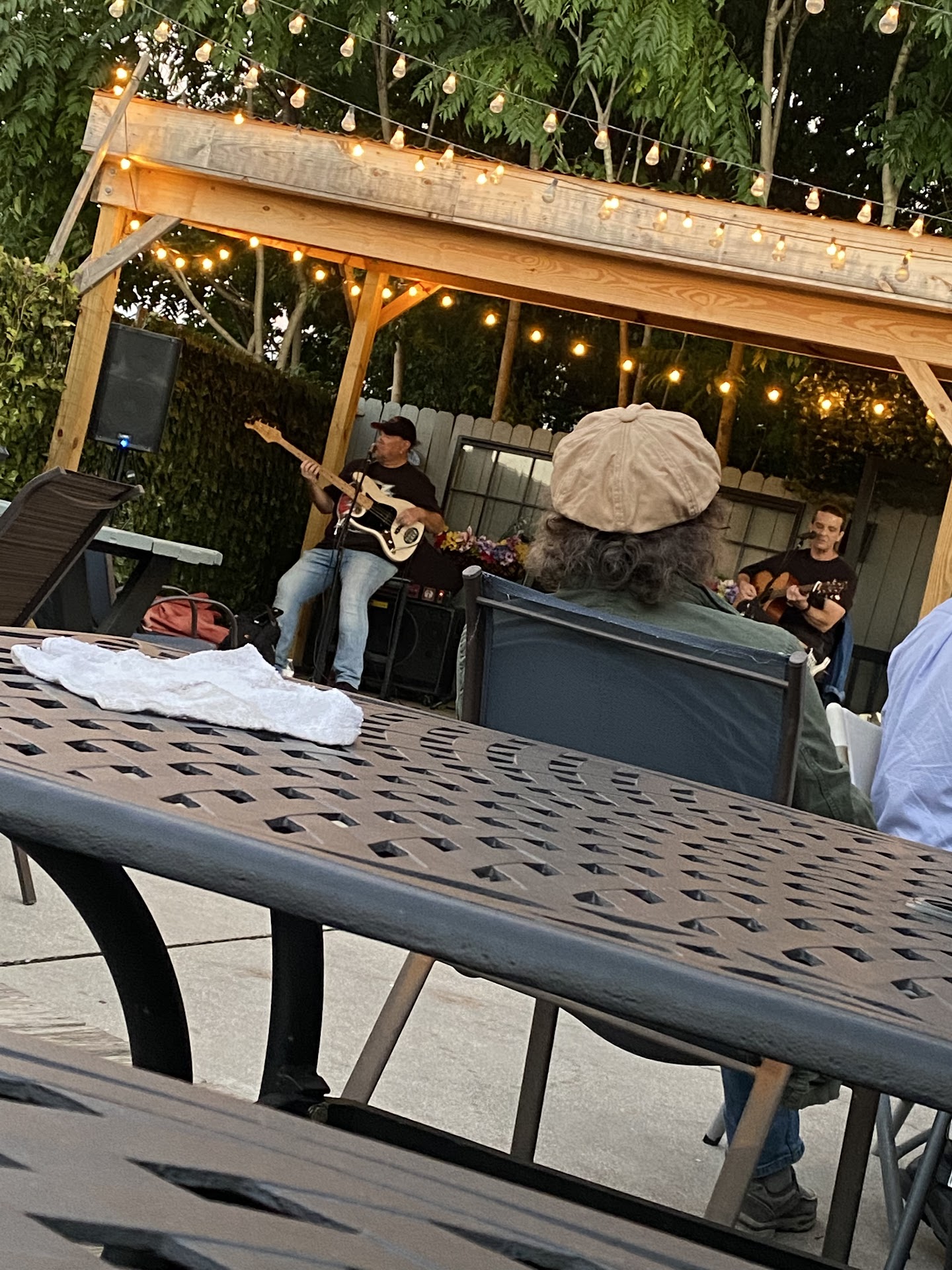 I am only giving three stars because our waitress was kind. When my daughter and I walk in to the establishment and are polluted with cigarette smoke I knew it would be a bad experience. I became frustrated and sick and the smell grew more nauseating and had to change seats to the patio to minimize my headache. We ordered tacos which took 30 minutes to come out. Six tacos, 30 minutes. In those 30 minutes a small band began to play terrible music, now I had nothing else to do so I got up and began dancing. I'm glad my hip replacement has healed sufficiently and I was able to get groovy. I gave them a standing ovation and sat down after I was sick of them playing their tunes. When the food came it was cold. Tacos don't take 30 minutes to make and they also don't take 30 minutes to become ice cold. They had minimal flavor and didn't fill our bellies. We paid and left and knew that we'd never return. I had high hopes but was let down. Photographed below is the band, the empty table in the 30 minute span, and...