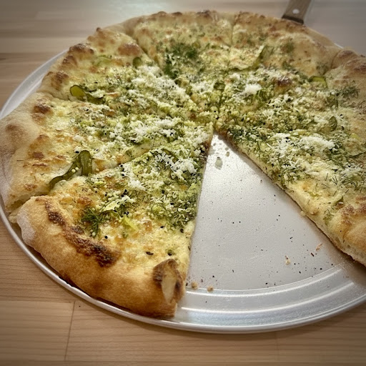 Next, we got the Chicken Tikka Pizza. Unlike any pizza I've ever had before but in the best way. It had really wonderful textures and flavors. So unique. We couldn't stop talking about how amazing the crust was (what a thing to be raving about). Looking forward to trying the pickle pizza on our next trip.