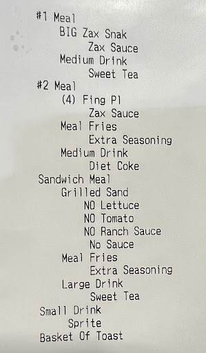 Bottom line up front, the food is mediocre to terrible and the people currently working here are racist towards Caucasians. Passing through on a long drive, we decided to stop by for a chicken sandwich. When attempting to order at the drive through, the speaker was broken which probably led to some confusion about our order. Every other word read back to us came through. When we got to the window, we paid and received a receipt. I noticed they did not include both drinks we ordered. I let the cashier know and asked for another drink handing him my credit card to pay for it. He refused the card with a slight attitude in his voice. When the window shut, I noticed he talked to what I think was his manager when she (manager) mouthed the words, "They think they can get a free drink because they're white." He then handed us our drink. End story: fries were soggy; chicken was mediocre for Zaxby's in general. Service was timely. Unless these issues are fixed, I recommend choosing a different chicken sandwich place...