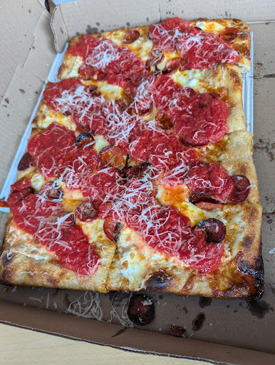 We got a small Detroit and a grandma, both with pepperoni. Both were outstanding. The Detroit was as expected. Thick, airy, light, crispy crust. Top quality cheese and THE best, freshest, most simple, yet flavorful sauce I have had. It came out first and was very impressive. A great pizza, particularly if you enjoy that style. What stood out were the bites that had no sauce. Normally this is not something I enjoy. Even good pizzas don't often have crusts that can stand alone as delicious. This sourdough stood alone as an amazing flavor profile.