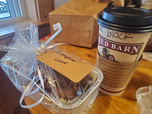 Read moreI was happy to stumble upon this cute cafe, with everything you need to kick start your weekend! I've never had the red barn coffee but I'm a Columbian coffee fan and their regular brewed coffee was delicious. Even more delicious was the Mocha fudge gingerbread muffin top. I could ask for that with my last meal on Earth. So light and fluffy with fudge in the middle. The atmosphere was extremely welcoming, the woman who took our order was a little less pleasant as we were taking our time looking around and figuring out what to order and she seemed to want to speed us up. The decorations are all coffee mugs that are also all unique and it was fun trying to look at all of them. They had a cute outside table that looked so cozy if there was just a little heater in this weather (December). I wish I lived closer so they could where I get...