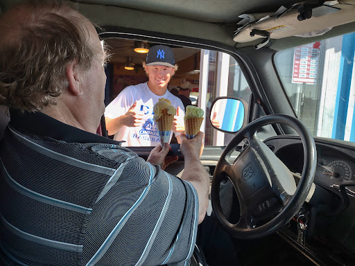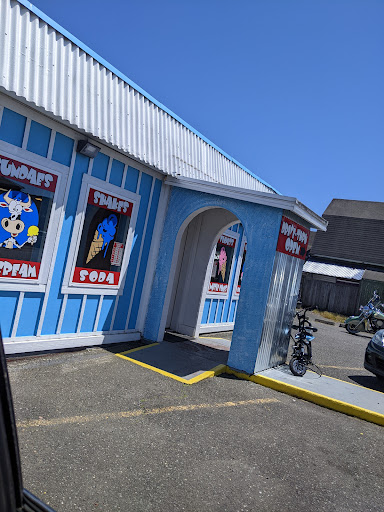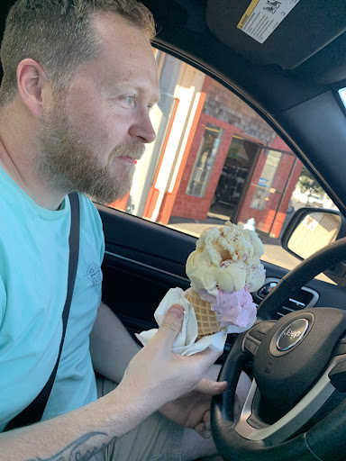 After a long trip to my grandparents house in Ocean shores with my wife 6 week old and 2.5 year old we left for home in Puyallup all we wanted was ice cream as we pulled up to ice cream joint in OS realized our 2.5 yo is asleep after 2 mins so can’t get out of the car so I’m like we will just hit DQ in Hoquiam or Aberdeen. As we are driving thru Hoquiam the 6 week old starts to scream I frantically pull off the road into a parking lot so my wife can quickly get the my son quiet before he wakes my daughter. As we both look at each other we utter disbelief as I see “Ice Cream - Drive Thru” and it was this cute little corner spot. The girls working were polite / helpful handing menu while we waited and prices were great. We laughed at the giant size of 2 scoops in a cone as I got one and driving (I don’t recommend...or do I 😜) flavors were great and fresh . We will make this a regular pit stop on the way home from now on . Thanks for the laughs 2...
