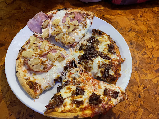 Read moreThey are probably one of the only places to grab food in the area. Seemed they only had one cook, one waitress and one gentleman helping. So they were busy which would explain the long wait… to be greeted, sat and order. The pizza came out fairly fast. I just thought them charging extra for the bacon was a little much since we ordered the Hawaiian pizza but asked for it to only be on half the other half topped with bacon. The mozzarella sticks we ordered took over 26 minutes to get so I sorta regretted ordering those. The toppings on the pizza were good just pricey. The pizza crust was very thin and crispy. It sorta reminded me of a frozen pizza crust. So I’m guessing the freeze the crust and then use it. It’s worth a stop in if your hungry since like I said there isn’t many options around. $30 for a 8 inch pizza, cheese sticks and water is a little pricey so be prepared to pay the extra bucks! The gentleman helping out was so helpful, kind and fast. Definitely appreciated his help! I think he was a waiter too just not or waiter but he was definitely more helpful and involved than our waitress was....