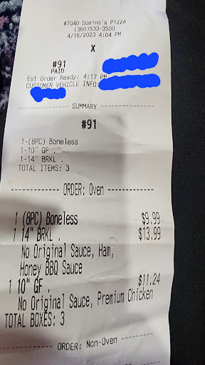 Read moreTypically the quality of food from the Hoquiam Domino's is pretty good. However, tonight was a let down. Just because you're running a 50% off deal doesn't mean forget half the toppings. Hopefully the Manager or Owner sees this and decides to make it right as this is not their usual quality.