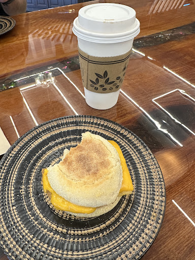 I decided to try their Red Bull spritzer and ordered a breakfast sandwich to go along with it. Since I react badly to pork, I went with the vegan option made with Impossible sausage....even though it cost about a dollar more than the regular version. Unfortunately, that choice didn’t quite hit the mark. I couldn’t tell if the sausage was overcooked or if it’s just supposed to be that firm, but it gave the whole sandwich a strange texture and took away from the flavor. Still, I powered through and finished it.