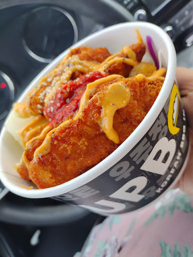 I'll love to share the pros first then the cons after as there are many cons after all. My husband and I tried the restaurant and then went back again that's a plus in my book. (I'll actually include photos of both visits.) My husband really loved it here and that matters the most to me. I know he isn't picky and this place is great for that. Though I do enjoy that you can sort of choose/build what you want too so you can make it unique and to your liking. The food is 5 starts no doubt, flavor, temperature. Price is maybe 3-4 stars as it can be a tad pricey but if it is once and a while type of deal no harm. It was delicious and filling. They also have snacks there like turtle chips or in case you just want their yummy mandoo because believe me that is super good and my husband and I bought extra the second time to share. My first time trying it I wasn't the biggest of fan but I learned. I did not ask if I could taste anything first but if you want to try asking I totally would at least like the noddle's or sauces. I am not the biggest fan of the noddle's myself but the following time I went I changed it to just rice, cabbage, veggies and the yummy chicken. So you learn and make change is what I say. So that's enough of the good I am gonna share some of the bad now and maybe it is not something that will really bother you but I felt super bad myself. If you follow my reviews you know I am a plump/heavy gal and I do enjoy eating at the restaurants but this is just not one I could enjoy. I do not like sitting at high tops at all. It's just super uncomfortable. I thought luckily they have the smaller chairs in the middle but nope. NOPE. NO. I couldn't stand the chairs maybe they are durable but the feeling of them sliding down is a no, no for me. It scared me and I started to tear up a bit. My husband was like let's go its fine but I wanted him to enjoy his food in the restaurant. None the less we did not stay inside. We had to eat in our car. There is a bench outside but it was super cold that evening. That's really my only negative is the seating is not comfy to me, and maybe the price is a little much but I can look past the second.