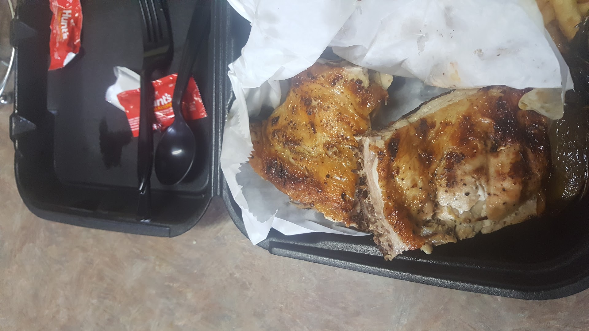 I decided to stop by since I was in the area, but the experience was frustrating from the start. There was a communication issue when placing my order, and unfortunately, things only got worse from there. When I got home to eat with my kids, we discovered that the chicken was completely burnt. It was so charred that it had a bitter, sour taste, and none of us could eat it ā not even our dogs wanted it.