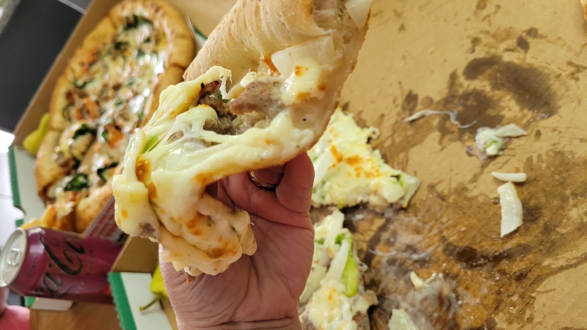 Read moreWe were super excited to try this pizza. It was a little disappointing when you buy pizza you expect to get toppings that you paid for. We ordered the Works Pizza which has Pepperoni, Canadian Bacon, black olives, mushrooms and onions. Well the first piece of pizza had not one piece of meat on it, and the other piece had 2 small pepperoni's. I never even got one piece of Canadian Bacon and the same with my husband's pizza. It would have been good if they had put some toppings on it. There is too many other pizza places that will put toppings on their pizza, they better think twice about this or they are gonna...