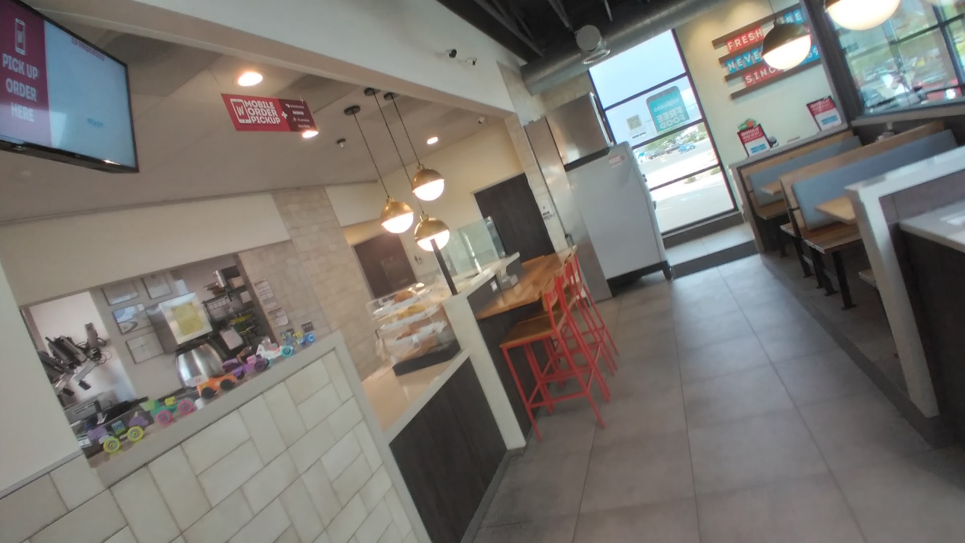 Bought a single patty, single cheese hamburger with Baconator fries and a large, (free refills) Coke Zero, ($9.35). If you choose to dine in, when you enter this smallish Wendy's stop at the first counter. You can choose to use the electro-board where you press to request your meal action. However, if you are using a coupon, you need to wave to the front counter for help. See photo for the "When-Does?" interior layout. This was my first visit and I walked in and went to the pickup counter. How was I to know the standard operating procedure (SOP)? I suggested to the young manager to have a sign letting folks know to stop and use the first counter to order. I stood at the pick-up counter for 3 minutes before I had to speak up to get my lunch-action moving. The hombre's bathroom was new and efficient. The hot-air hand dryer was "on the blink." I did a don't ask, don't tell because the auto-towel gizmo was pushing its product like a champ. There is also an outside vanity sink with auto soap and hot and cold taps that allows you to wash your hands w/o having to wait for bathroom access. Nice touch. If you snorkle and wolf down your meal and get all gooey, sticky and slob-looking, this self-standing sink will bring back your inherent beauty with H2O and soap. Your soda pop is self-serve Coca-Cola products. The touch screen lets you select various options. I tried to use a moistened napkin to click-create my drink but the touchscreen did not respond. I was trying to keep my fingers from getting koodies. You can mobile order and also traverse the drive-thru. There were no flies becuz the interior had one of those fancy Eco-System bug nuetralizers. The free Wi-Fi was not the fastest draw in the West. My burger had too much tart secret sauce. Next time I am gonna request a dry patty. Overall, Wendy's...