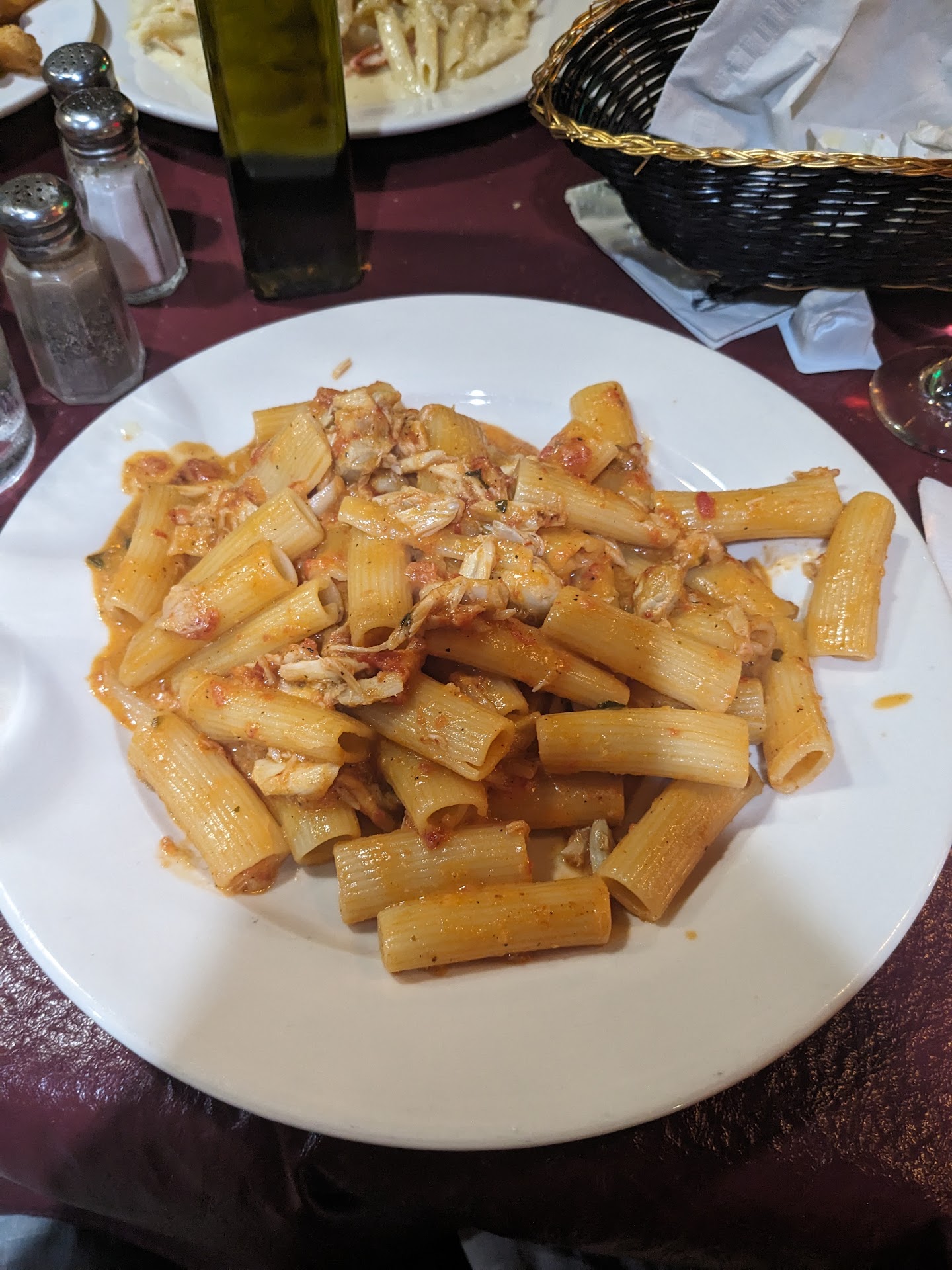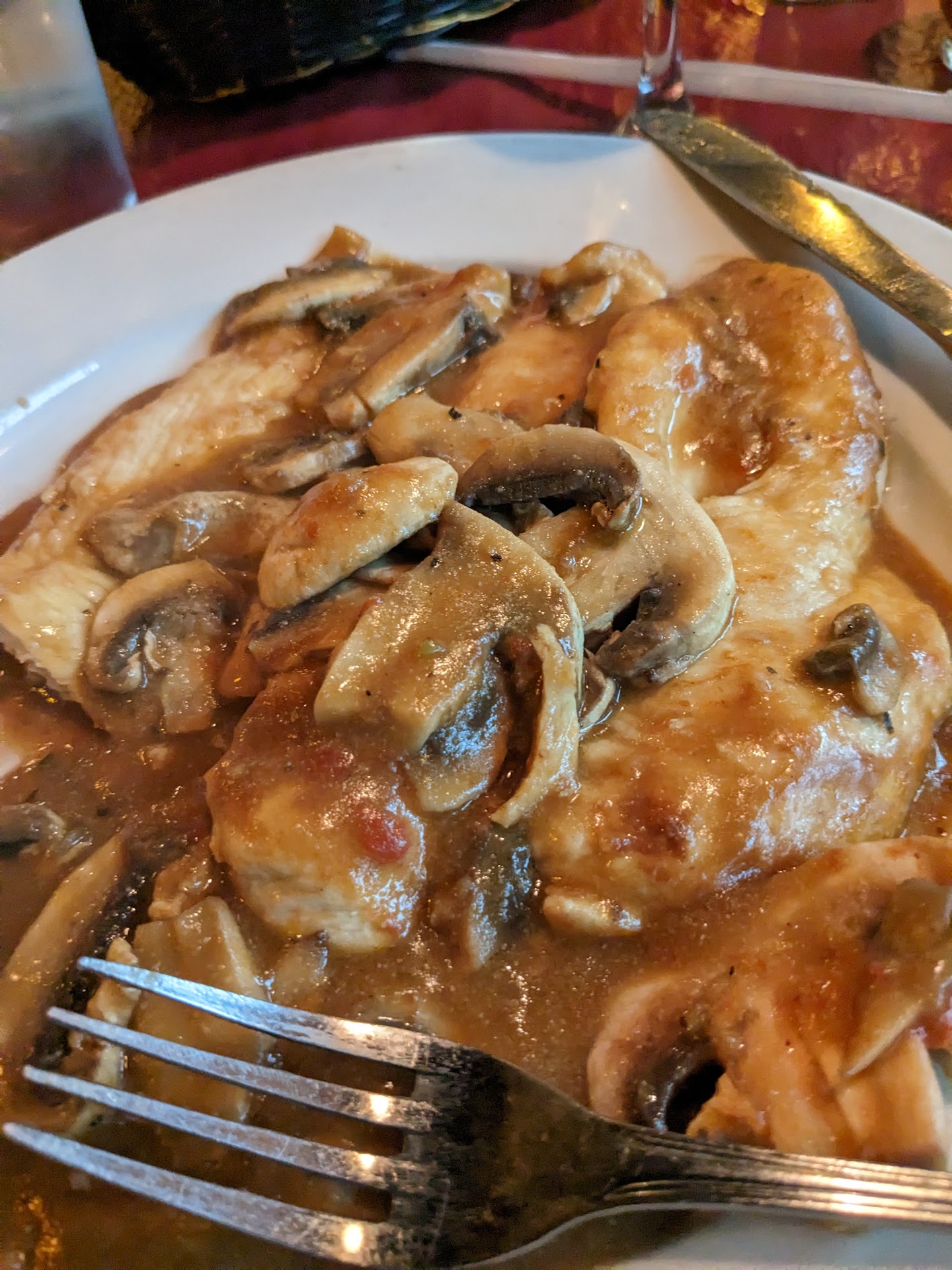 We were the only people in the place and yet food took 35 minutes; which was great news to my 8-year old since it meant more 🍞 We are talking children's pasta and I can't even recall what I ordered but I think it was chicken parm. I brought wine and was waiting for proper glassware. Are these not Italians who know a water glass from a red wine (Barolo specifically)??? Oh at this point the professional waitress left ( it was an early Sunday) and the older woman that took over had to be family from her demeanor and how she addressed the Hispanic staff. This is where things got weird. She started giving unsolicited input on my wine consumption, myself Kid's appetite for endless 🧺 of bread 🍞 and the absolute 🍒 on top of this attempt at waitressesing was when she declared I had enough food ordered and didn't need an order of Italian sausage!!!!!! I have cancer and weigh 125 pounds on a great day but have sank as low as 112.