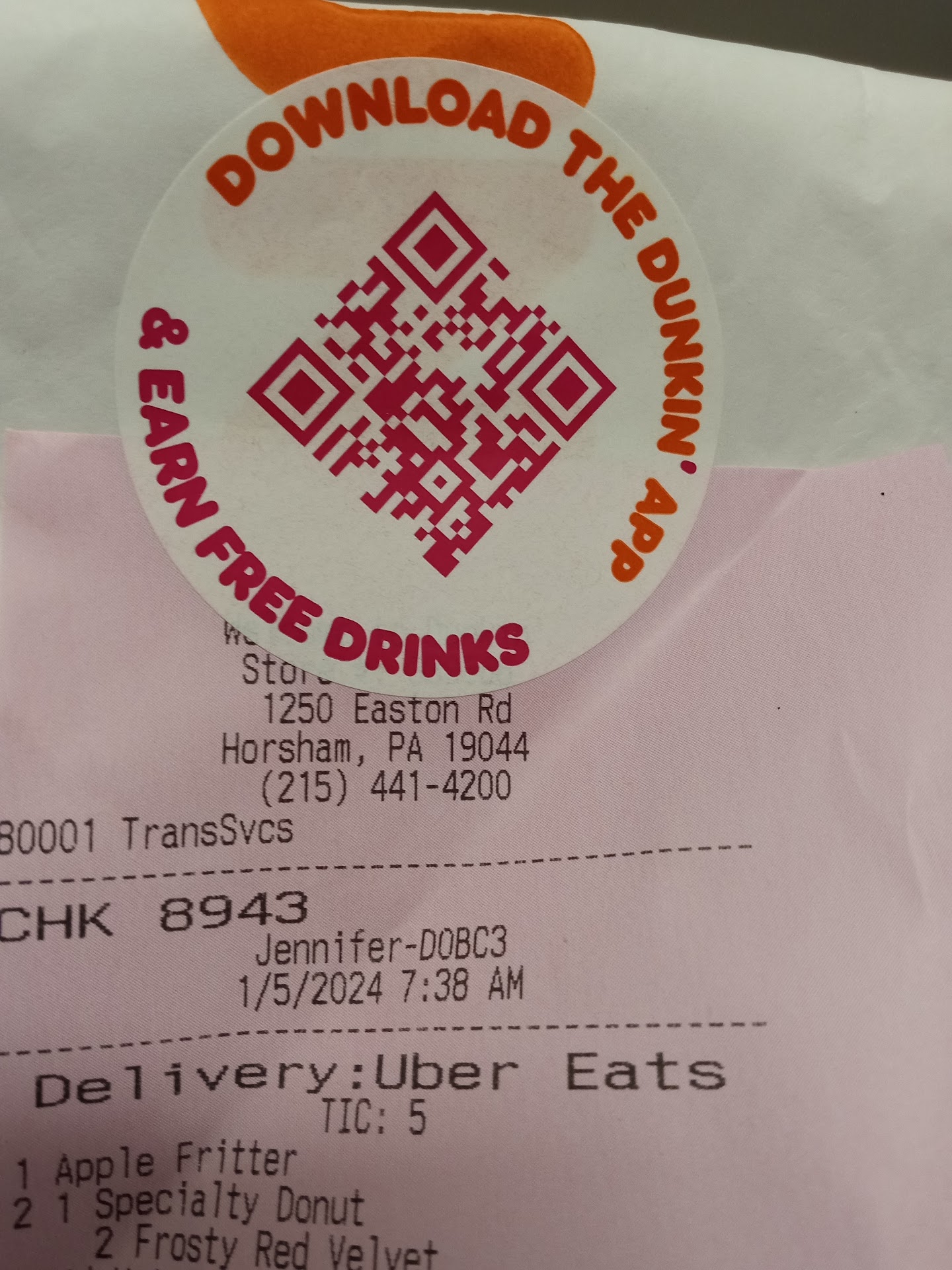 Read morePoor customer service - generally at Dunkin I get several coffee drinks for my family, and a small tap cup of tap water for my youngest. First the worker couldn't understand the order, then when I pulled to the window she recited it back - wrongly - twice.