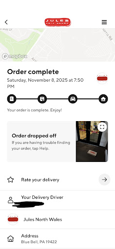 I called to let them know that we discovered our pizza had been delivered 50 minutes late and placed on the floor of the vestibule outside of our event. We hadn’t realized it had even arrived until we went to leave.