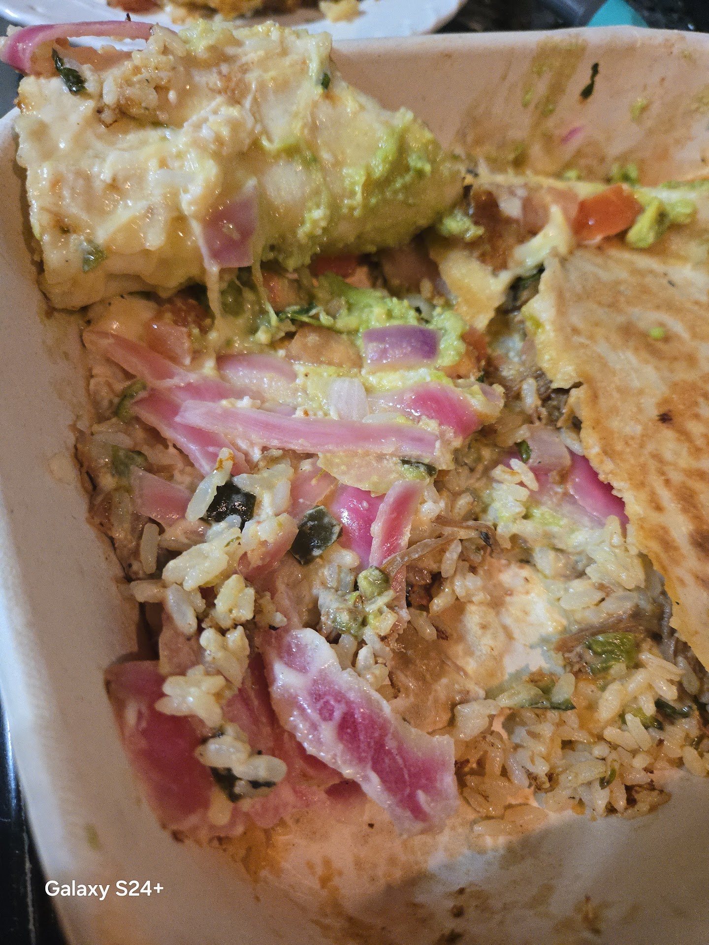 My wife and I ordered two quesadillas on May 23, 2025, separately, each on our apps for takeout, as we have done numerous times before. We have always loved the quesadillas from Qdoba in the past, even more so than single location restaurants that specialize in similar foods. However, this time, surprisingly both quesadillas were awful. The tortillas were a soggy mess and there was no indication of the usual toasting on the outside of the tortilla. It was as if they were just taken out of the package and microwaved. Moreover, the distribution of the fillings for each piece was uneven at best; and some pieces barely had any filling whatsoever. A wasteful mess.