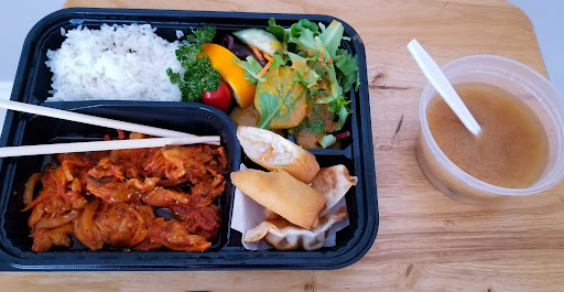 Between 1130 am and 2pm, you have the option to choose between several bento box. I order the Spicy Chicken marinated in Korean spicy sauce & vegetables with is served with a miso soup some garden salad, two fried shrimp dumplings, harumaki (Vege), three peace of a California roll & white rice for 13.5$.