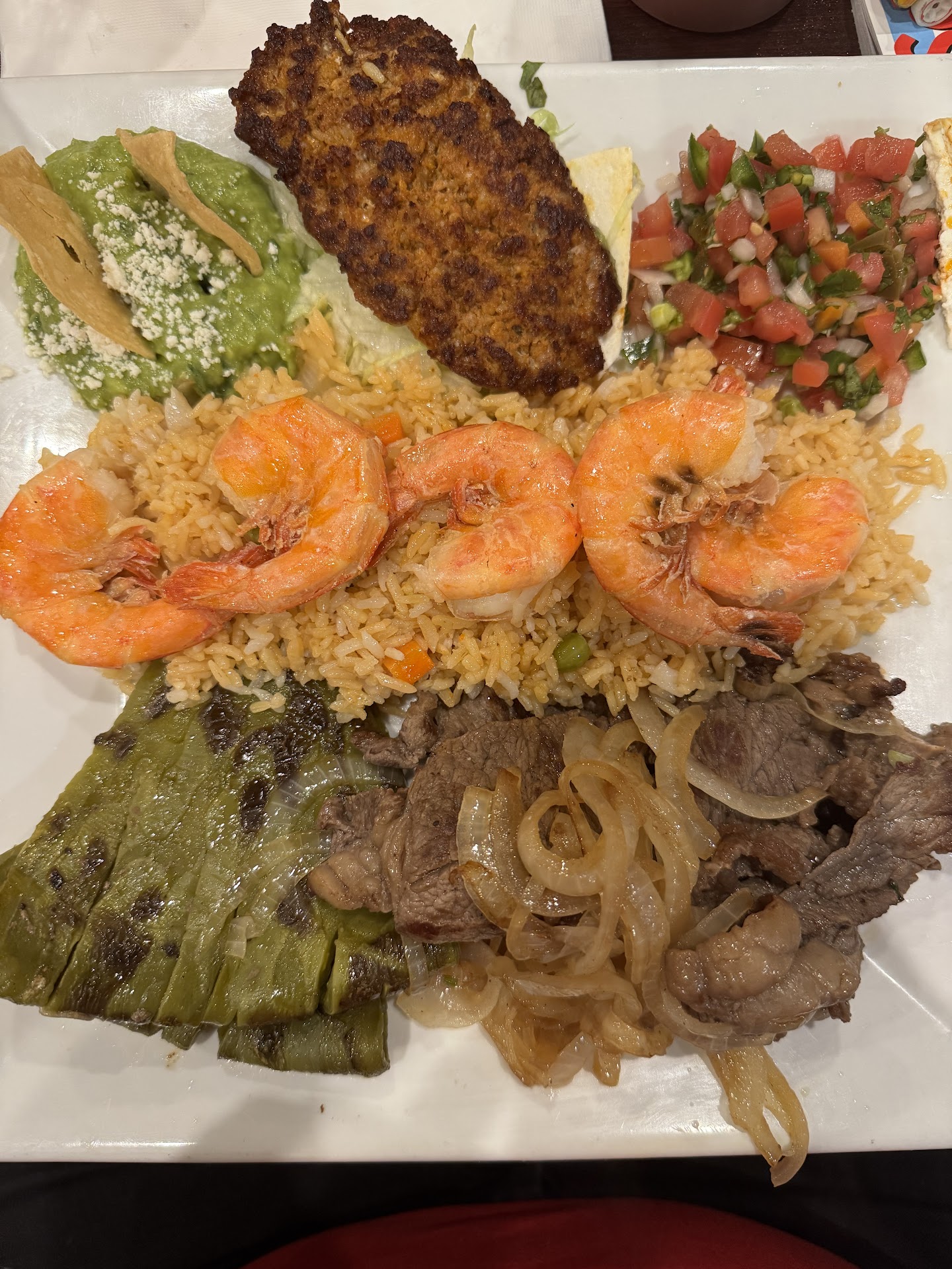 Had late lunch in here last sunday. Some reason I craved carne asada so my husband searched on the internet and he said let’s check out this place since had a good reviews. Really didn’t know how to pronounce the name of restaurant.. sounds a bit weird but who cares about the name and I excited when I saw their menu. The menu is pretty decents. So meanwhile we look it on the menu they had complimentary of chips with beans and cheese over it. This way is actually brilliant idea. Love it! Most of Mexican restaurants we’ve been they served chips with salsa on the side and most of the times the salsa didn’t taste like homemade. So we both order the same tacos and we both loved the Al pastor and not really the carne asada. He ordered quesadillas and came to our table and he looked at it with strange doubt eyes. I told him it’s probably this place has different way how to make their quesadillas (tried to cheers/ calm him up a bit) but unfortunately he didn’t finish it because he didn’t like it. So I got myself a bistec encebollado because other menu had nopales as one of the sides and I don’t think I can eat that and I asked the waitress if I can replace it with something else and she said no. Honest opinion I didn’t really like my plates either… sooooo disappointed of the taste of the steak also the rice. I meant the rice is watery and I really didn’t taste like a usual Spanish rice. Is more like over cooked. The meats didn’t taste how I like it. And also I ordered burrito to go for my son that love burrito and when he ate it at home I asked how was it and he said “it was ok” If we coming back here again definitely we’ll order the tacos and maybe try something else other than what we got today and let’s hope will not disappoint us again. By the way the front of the girls all were friendly. PS: this place has a parking space. No need to worry about parking...