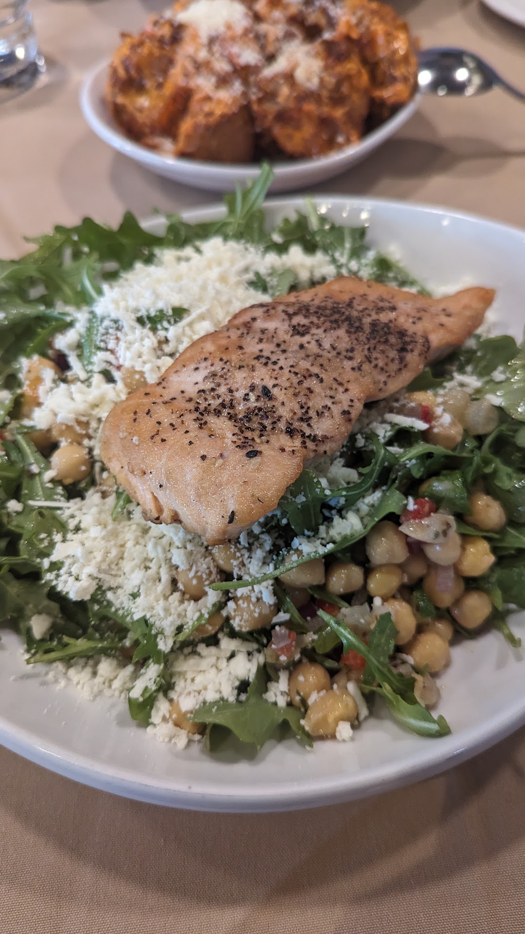The plates were delivered by a food runner so miserable that you could see as his misery in his slumped shoulders as he made his approach to the table. He proceeded to place the appetizers with the gentleness of a vaudeville comedian, on the table (THUD,THUD) with each drop.