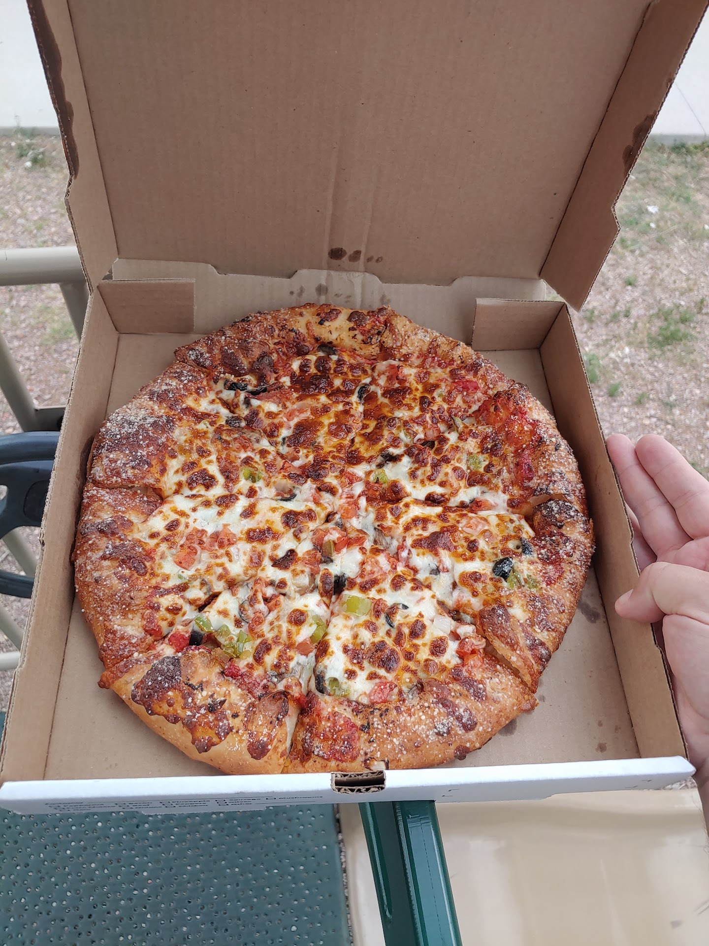 Read moreAfter the recent negative reviews I came here prepared to be disappointed. But this place makes a wonderful pizza, i can personally attest to that. Here are the specifics: Yes, it takes a while to get it ready. I ordered a veggie pizza and it took about 30 minutes. But that's because they had a ton of orders ahead of me. And when it came out, it was hot and fresh out of the oven. Yes, the edges are broad. But they have. Parmesan baked on them, and the way this place makes their dough, these edges taste like bread sticks, or even better. They are crunchy and fluffy, and thoroughly enjoyable. No, the person that takes orders doesnt have an attitude. She is attentive to details. And she gets things done. Yes, the pizza tastes great. The crust is thin and crunchy throughout. The toppings aren't falling off when slice is picked up. I already mentioned the edges - thoroughly enjoyed them. Toppings are generous. It was good the next morning too. Price? Yes, it's kinda on the expensive side. But not outrageously so. I have seen worse pizza for more money. And even their "small" 12 inch pizza fed me in the evening with 2 slices left over for the morning. It's perfect for 1 person and the box can be easily strapped to the back of a motorcycle to eat it with the view of the nearby hills. Overall, it's basically the only pizza in town (other than pizza hut), they are doing a great job, support them when you can or you won't have any options if...