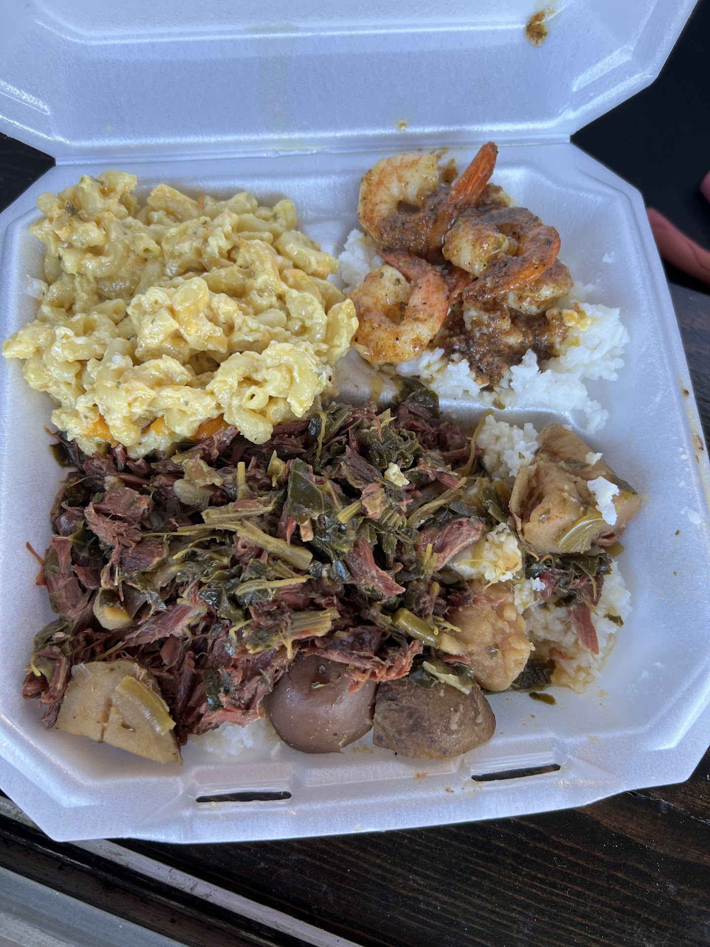 Besides the worker smokeing in the back of the restaurant. The food was pretty good except the rice that was a little crunchy. When I got too the restaurant I expect it to be clean and look like a healthy environment. When I got there, there was an individual who was smoking in the back with a lit cigarette. This is very offputting to the customer and very unhygienic. The chicken wings and the mac & cheese are five star. It could not be any better. The shrimp tasted they just got caught, the seasoning was amazing. I am leaving a two star review, for the active smoking in the back. It is very off putting, and takes away from how good the food actually is.