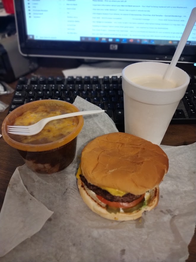 They have a good burger combo at a nice price but it wasn't speaking to me. I decided to go all in with a Jumbo Cheeseburger, Frito Pie, and a cup of Ice Cream. Yikes, my eyes were more hungry than my stomach but I ate it all eventually.