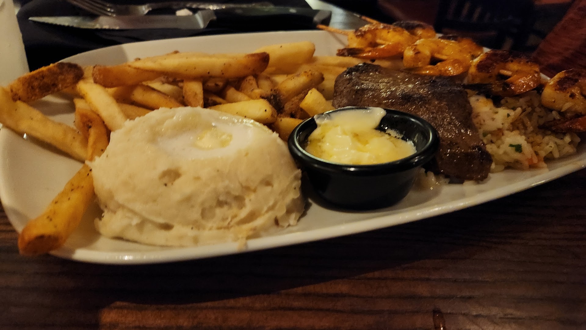 First and foremost, the Outlaw Ribeye was a true delight. Cooked to perfection, this thick and juicy steak was bursting with flavor. The marbling on the ribeye ensured that every bite was tender and succulent. The seasoning was spot-on, enhancing the natural taste of the meat without overpowering it. It was served sizzling hot, and the combination of the caramelized crust and the melt-in-your-mouth texture made it a memorable dish. The portion size was generous, leaving us all satisfied and craving more.