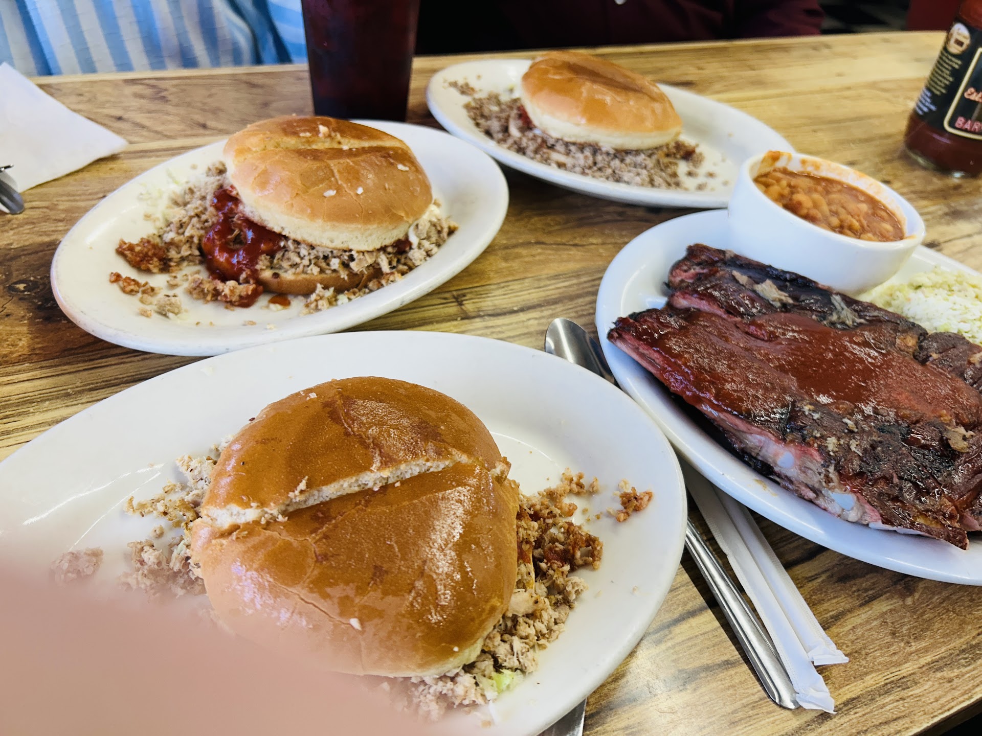 My favorite plate is the rib plate with fries, with beans and slaw ordered as additional side dishes. But be forewarned: that plate is enormous and one person can scarcely eat it all at one sitting, unless she or he has a gargantan appetite.