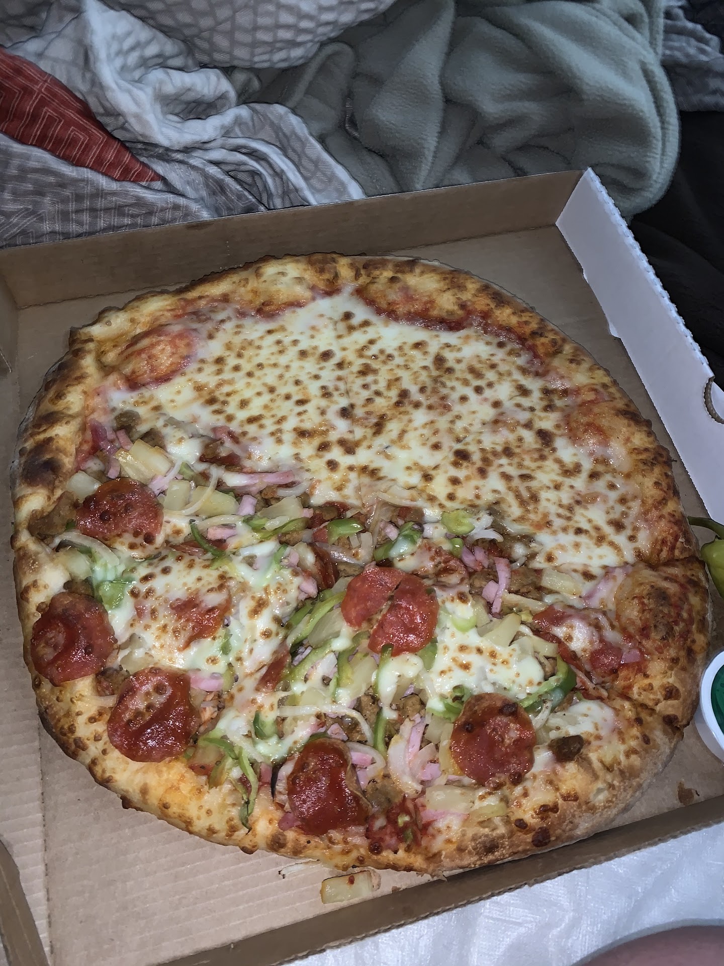 Ordered a pizza on a Thursday night while on vacation. After an hour called the store to check on order and was told they didn't have it. Checked bank account and money had been taken out so I called back. She finally found it and said they would put it at the front of the make line. I asked how long it would take because by now it was around 9:00 pm and kiddo needed to go to bed. She said it would take about 20 minutes. That was 40 minutes ago and here we still sit. Store is 2.8 miles from us by the way. Update: After another hour called the store again and was told it took a bit longer than she expected. In all fairness, they did refund our money and the pizza finally arrived. Beware though. Their no contact delivery consists of setting your pizza boxes directly on the ground for...
