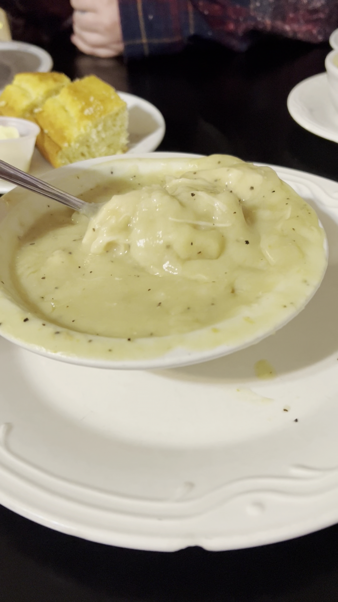 OMG OMG THE CHICKEN AND DUMPLINS!! šš„š yal, forget the chains and come support these awesome folks . This place is too good to be true and the food tastes like momās in the kitchen cooking it all up from scratch and the quality and quantity shows. Me and my friend finally got to try the Wednesday special chicken and dumplings with two sides. One way you know they are made fresh daily is the side options change daily. We got different to try and ALL of them reminded me of home. And omg the portions and prices are so appreciated, especially how things are getting crazy these days. The staff is like family and treats even new comers like so. I LOVED the experience here. Iām beating myself up for not trying this place sooner. The daily special is where itās at! This place is a really cozy, small restaurant that feels like youāre eating in someoneās living room. The decor is old fashioned style and thereās a lot to look at. Service was awesome- our server Linda was very entertaining and honest about certain menu items which was much appreciated. I will definitely be back to try the pasta special on Mondays- lasagna AND spaghetti, whatās not to love?! Our last visit I ordered the Friday special Hamburger Steak that was smothered in a thick brown gravy with onions, and a massive pile of mashed potatoes and gravy, a side of turnip greens and corn bread. The āsteakā was really thick and It was very satisfying, needed a little salt but I donāt mind that. My friend ordered the BLT and was super delighted by the amount of bacon and flavor- you can even choose white or wheat bread. The only disappointing part was the fries, it just seems if you are going to be a southern home cooking kinda place you need real, home cut fries, not the frozen crinkle cuts you can find at some chain thatās not worth going to. Other than that, If you are craving home cooking in a quaint little setting, I recommend this place over a chain any day. Thereās heart...