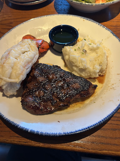 Read moreWe arrived early (plans for later) were seated and greeted promptly, and the staff was extremely friendly. That and the biscuits, which I don't usually eat, were the best part of the experience. It took 'someone' 30 minutes to notify me they were out of salmon, (the restaurant wasn't busy, so no way did they run out during dinner hours), and the stuffed mushrooms appetizer was swimming in separated butter. The tilapia (substitute for salmon) wasn't seasoned, shrimp and lobster wasn't 'fired' properly, and I didn't receive my rice pilaf. My companion also didn't receive ordered mashed potatoes, but a baked one smothered in sour cream. By the time our meal was brought to our table, we only had time to take a couple bites and box the rest, plus we were late arriving at our other destination. Keep in mind, we were only a couple miles from either, and there were lots of servers standing around while two or three were too busy to keep up their stations. In addition, the prices were exorbitant for the food quality. Unfortunately, we will not be returning.