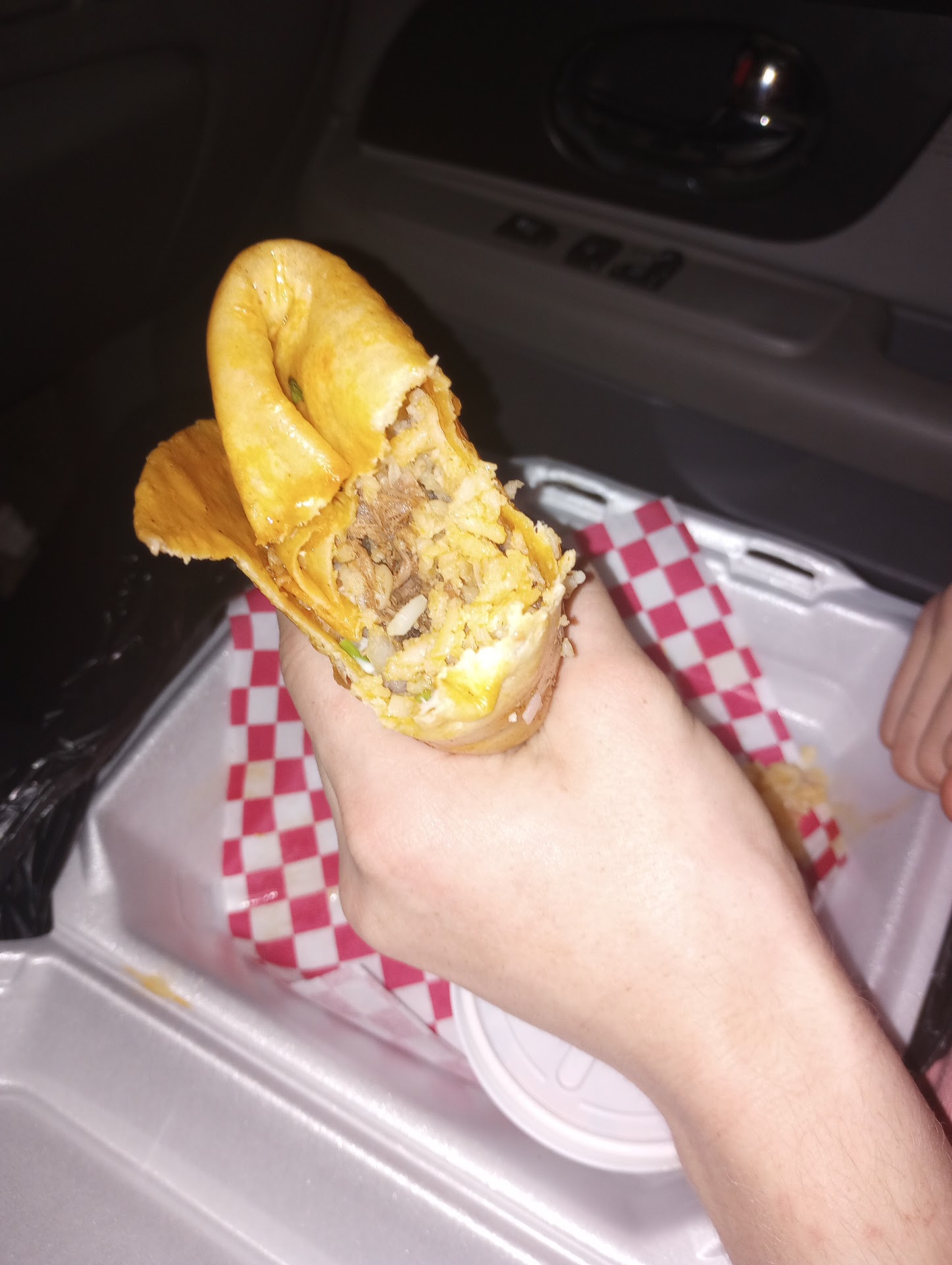 Okay so on to the food... I ordered the Burra burrito.. Very pleasantly surprised with the portion size... And the flavor I honestly am not sure the last time I went to a Mexican place for that much flavor it was so good. The burrito did come with a sauce but alas it was too spicy for me.