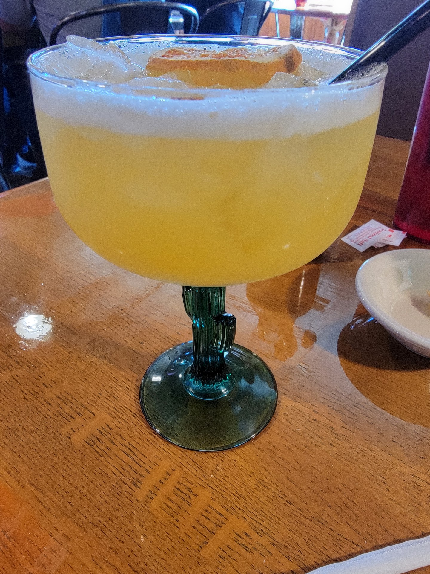 When the ticket came, we noticed that the other margarita which my companion had opted to keep was billed at $6, plus the $3 for the extra shot she'd added.