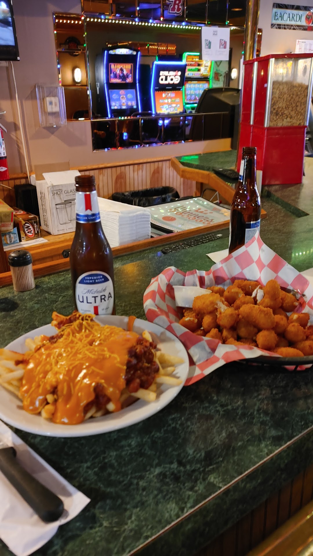 Read moreI needed to use the bathroom the women's had a sign on it saying out of order. I asked my guy to guard the men's for me for a minute, he agreed. I start going in and this lady sitting at the bar stops me and declares it is the men's room. I agree and point out that the women's is closed. She's like there's another women's. I thank her and explain that I didn't know since I hadn't been there before. I got back from the bathroom and join my guy. He makes a comment about that and I'm like that girl seemed kind of rude, the way she said that was a bit mean. Then our bartender shows up and says to her other customers something about how she's kind of mean. I realize it's the same person and half aplogize. I was like oh I'm sorry I didn't realize you were our bartender. She said something like yeah you have an issue with me? I was like I did think you were kind of rude while correcting me. She asked for an ID. I gave her my military one. She said she couldn't legally accept it in south dakota. I looked it up and it is an acceptable form of ID in SD. I gave her my driver's license and assured her the birthday was the same on both. She said they are often faked. I told my guy I was not comfortable eating there and we left. Based on my experience I will not recommend this...