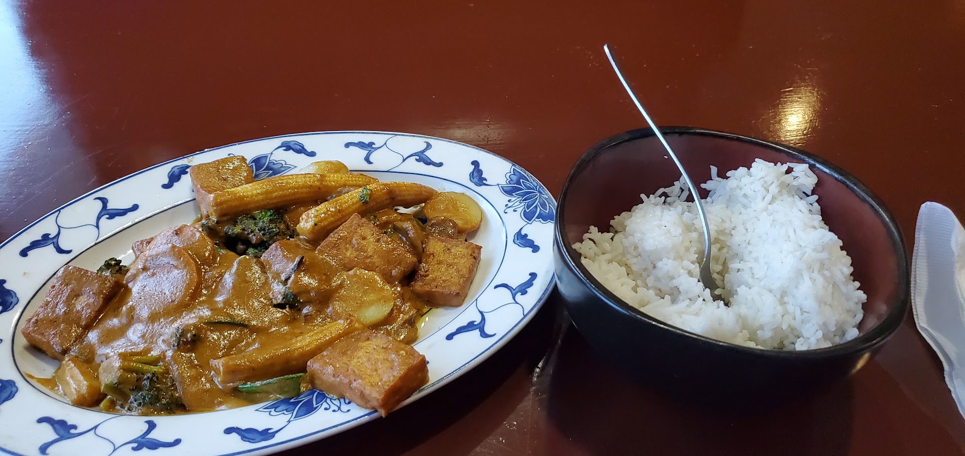 Waitress didn't come back to check on us until we were almost finished eating. At that time, I brought up our concerns as the rice tastes old and not good. And neither of us received vegetables with our meal. Her excuse was I asked for no mushrooms and that's what came with my meal. For the other meal, she said no Chinese restaurants serve vegetables with the general tso's chicken. She said we cannot give you vegetables now at the end of your meal, you should have asked us when you ordered. Well shouldn't she ask us if we want vegetables or if I want to substitute my mushrooms for another vegetable, since she knows it doesn't come with vegetables? I don't know of a Chinese restaurant that doesn't serve vegetables with their entrees. This is the first one I have discovered. She didn't offer to give us new rice that was fresh, we didn't eat much of it. The almond boneless chicken had a dark brown sauce that looked a lot like the sauce that was on the general Tso's chicken. I told her I didn't like the sauce that was all over the chicken, and that usually almond boneless chicken comes with a light brown sauce. She said that all Chinese restaurants make their own, different sauces, we are not a franchise. Ok, so what I have learned from eating at this restaurant is, what you are used to getting at Chinese restaurants, do not expect at this one. I have eatin' at lots and lots of different Chinese restaurants in many different states and countries. I do believe this is the worst Chinese food meal I have ever tried to eat. Definitely not worth the $27.