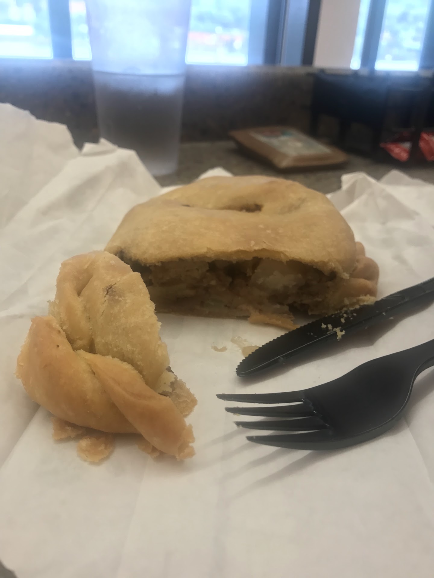 The okay: pasties. First of all, they were all pre-packaged and kept warm in a hot box. This didn't scream freshness, and it came through in the food. The special Philly cheesesteak pasty showed this very well with cheese that was maybe once melted and had re-congealed. The breakfast pasty was very heavy on potato and lacking on the things you really want in a breakfast dish: eggs and meat. I peeled the whole top off of my half to look for sausage and couldn't visually ID any, although you could almost taste it in a few bites.