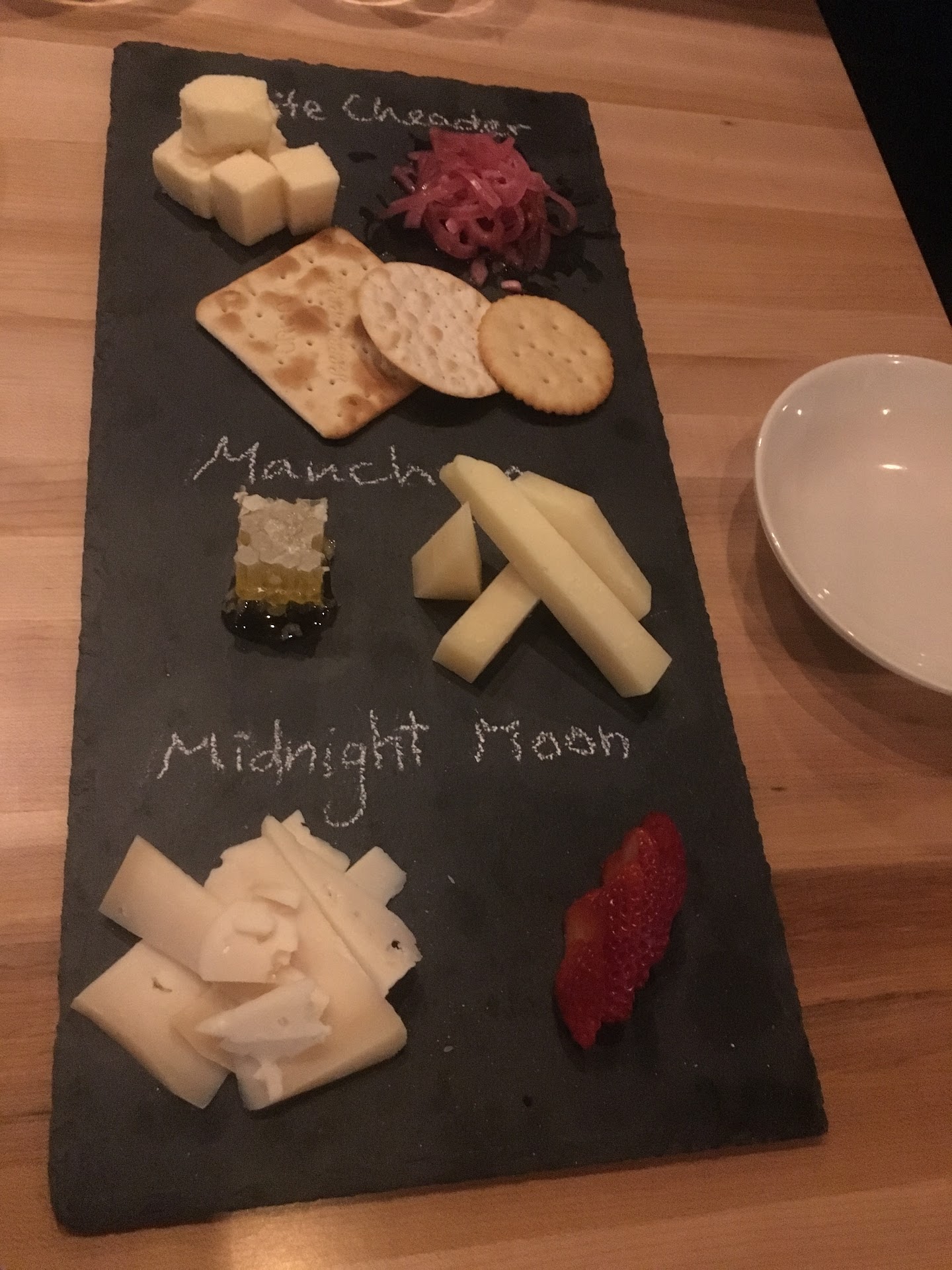 Read moreWe were really looking forward to ending our long weekend trip eating a nice dinner here for our anniversary. Given the recent reviews of the place, we had a high hopes. Service- Server came to our table briefly to take orders, deliver food and then completely abandoned us. She never came back to see if we needed more beverages or anything else with the meal. They had three servers on staff, a half full restaurants and yet it seemed they were too busy to give any table attention. Atmosphere- Great aesthetic but terrible music that didn’t seem to fit the vibes. It’s a place that acts nicer than it actually is. Food- For the amount we paid, the quality did not match. The NY Strip was very fatty, under seasoned and not seared. The mashed potatoes were cold and not seasoned well. All asparagus that came with the meals was still raw. The salmon was over cooked, under seasoned and the rice that it was served on was still crunchy and very dry. Meat ravioli was likely homemade but rolled out way too thick and not fully cooked. It tasted like it came from a frozen package. The kids meal burger had a burnt bottom bun. To start we ordered the farmers plate which had some nice elements but only came with one cheese and three meats. The best part of the entire meal was the pickled red onions on the plate and the Brussel sprouts we ordered. Seems like the place has a lot of potential but not...