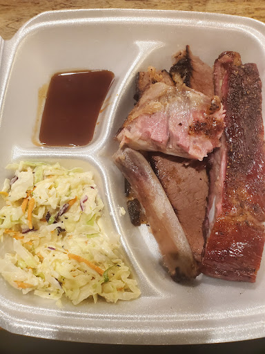 We were buying close to closing so im hoping thats why our food was in the condition it was in. We bought 2 combo bbq plates (comes with 2 sides). First plate had chicken, brisket, mac n cheese, and potato salad. Brisket was extremely dry (not sure why they still sold it), although I was surprised it was still chewable and had good flavor. The chicken was bland and had only a hint of smoked taste. The mac and cheese was dry and not even warm (it was room temperature like it had been sitting out for a while). The potato salad is not for everyone. It had too much flavor (still havent decided if this is a good or bad thing). I'll just say that I usually order potato salad from other bbq places and i ALWAYS finish it but i couldn't finish this one. The second plate had chicken, sausage, baked beans, and fries. The chicken was same as above. I did NOT like the sausage because it tasted just like breakfast sausage. I dont buy breakfast sausage because i dont like the flavor so i definitely didnt like this sausage. It was also filled with many bits of fat which is another thing i dont like. The fries were good for being fries. The kiddos liked these. As for the baked beans, another disappointment. Not because of flavor but because they didnt give me enough. I got about 1/2 cup of baked beans and even as I type "1/2 cup" I feel like im being generous with the description. The bbq sauce was delicious so theres that! Regardless of all of this, I am willing to try them out again. But.... One thing I did not agree with, AT ALL, is that the employee bringing out the food did NOT have a face mask. To be honest, I didnt notice if she had one as we paid because I was not paying attention but I definitely noticed when she got close to us with the bag. Is it like this all the time?? If so, I might have to wait until everything has settled down before I give this place a...