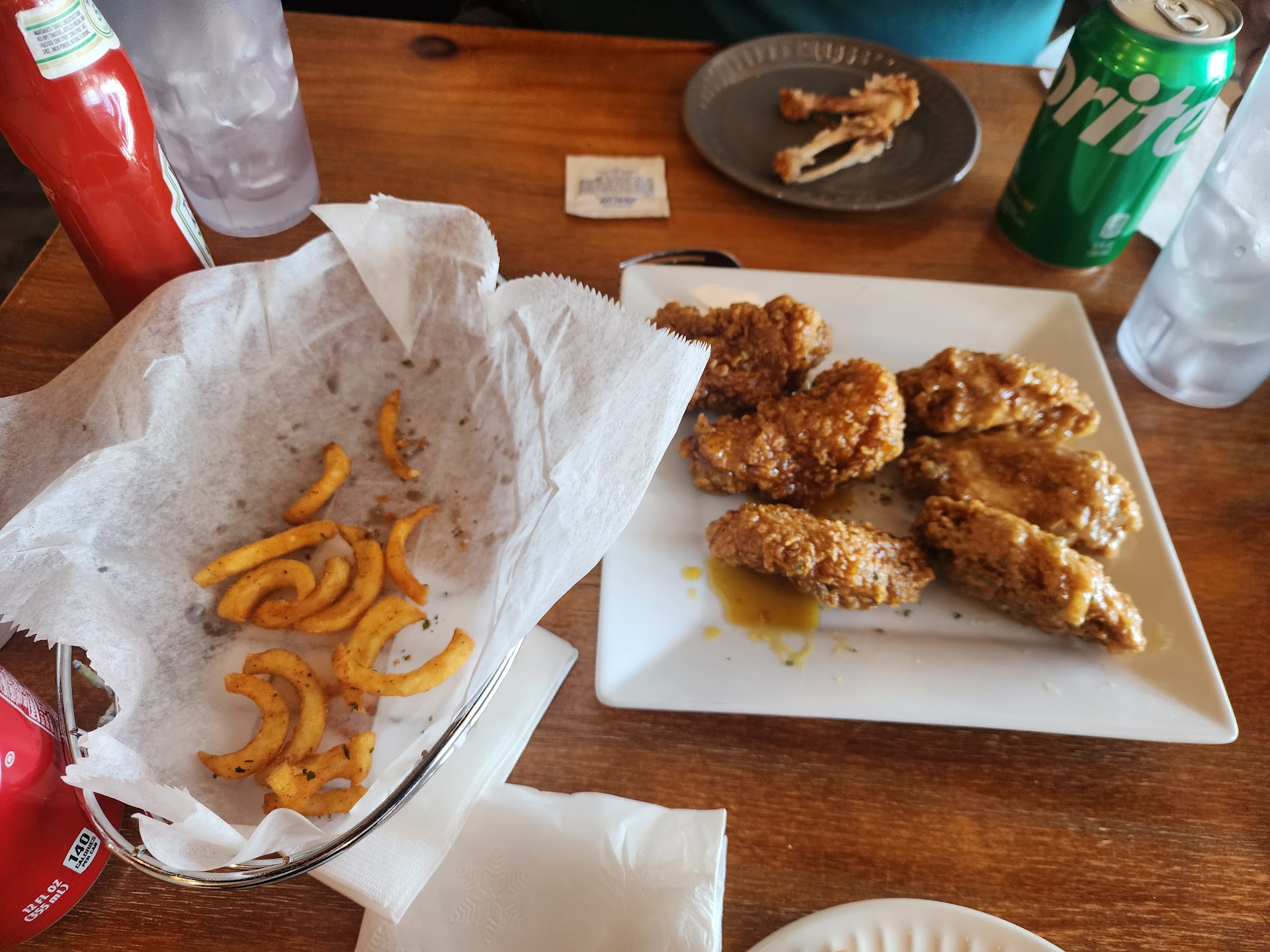 YEP, THAT'S RIGHT. Yet another FIVE STAR REVIEW. You think all of those positive reviews are a hoax? Think again. This place lives up to the hype. The inside atmosphere is cute and modern. BTS Playlist is POPPING. I didn't even like them before I came in. Service was warm, welcoming & informative. But that aint what I came for. I came for the chicken. Let me tell you... I WOULD DIE FOR THIS CHICKEN. We came for dinner and bet your behind we gonna be back for lunch tomorrow!! CRUNCH on 💯 JUICY on 💯 FLAVOR on 💯 Even the curly fries were the best I have ever had 😭 Only way to explain this is sorcery. I live no where near here and willing to take the drive to come back. Try it! Swear you won't regret it!!! Ps. I always try taking good pics, but we had a sample of the sauce and couldn't wait to dig in. Pic was post 4 wings deep.
